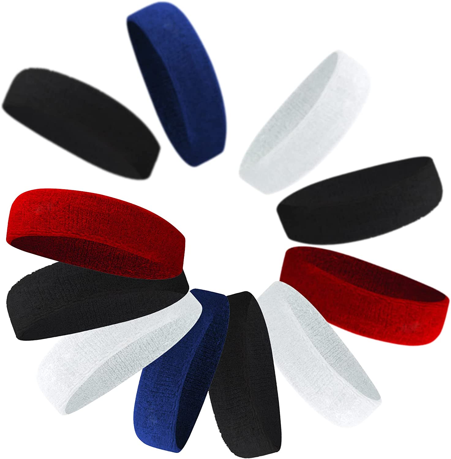 Sweatbands Sports Headband for Men & Women, Moisture Wicking Hairband Athletic Towel Headbands Cotton Head Sweat Bands for Running, Cycling, Yoga, Spa
