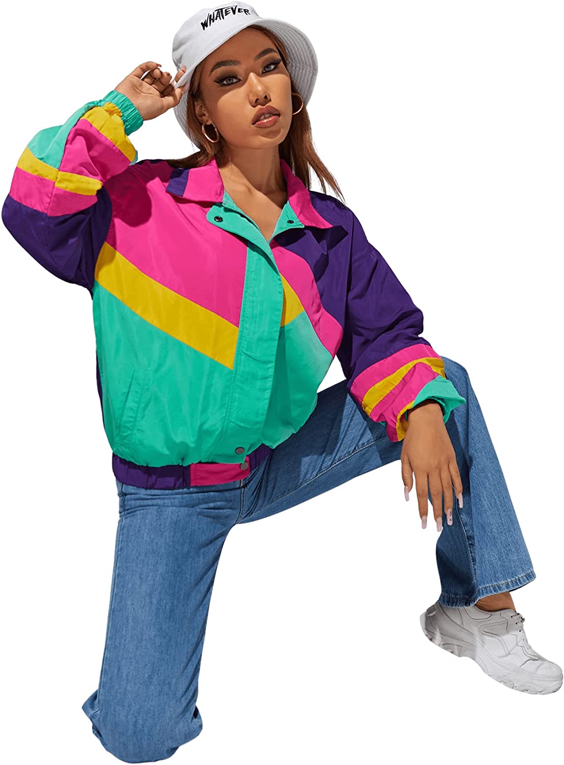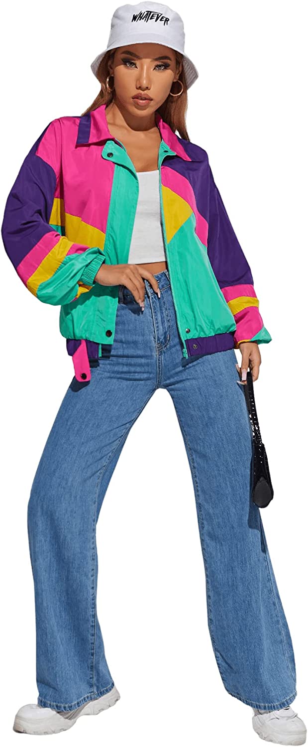 SweatyRocks Women's Casual Lightweight Color Block Bomber Jacket