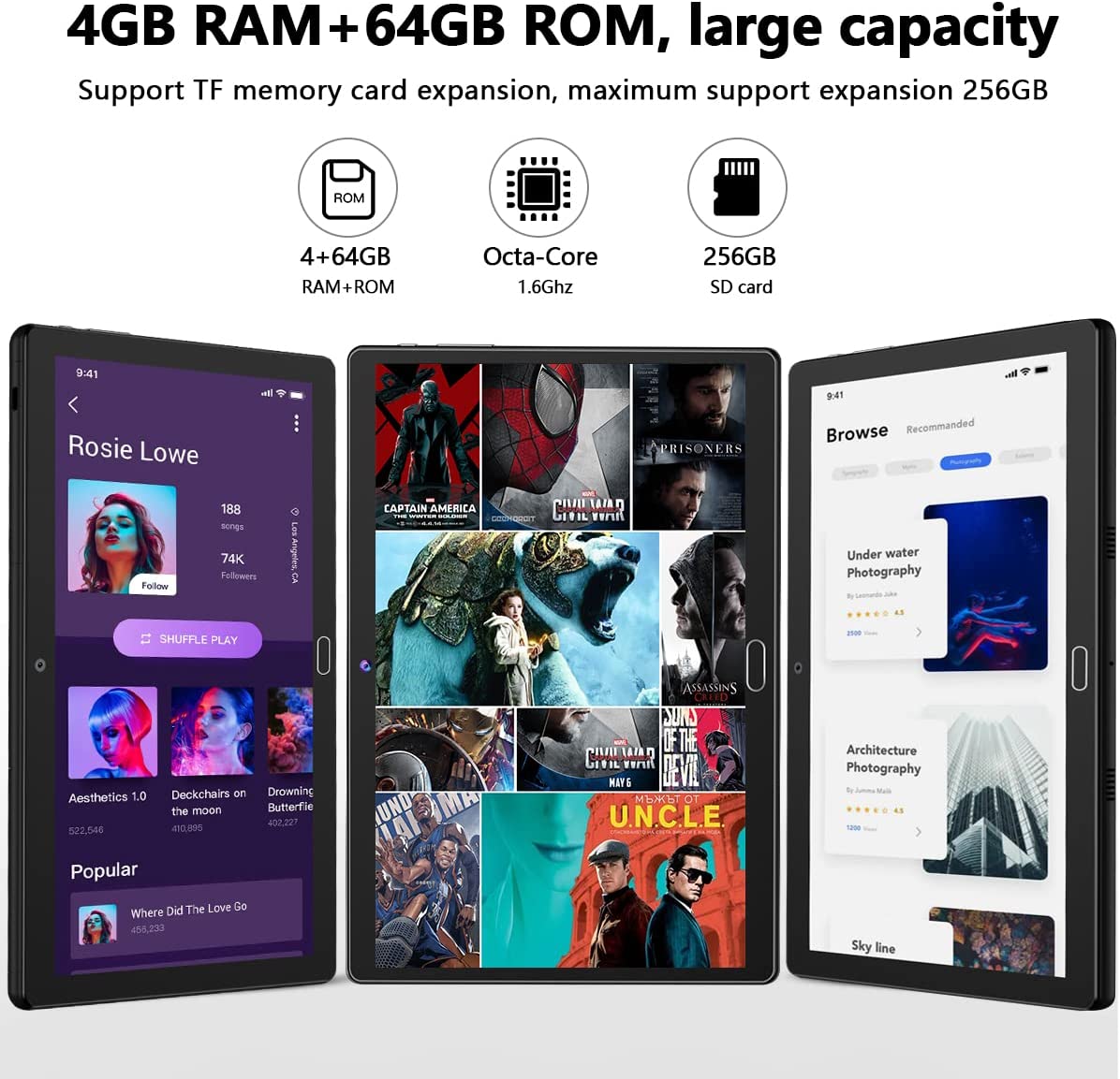 Tablet 10 inch Android 11 Octa-Core Processor Dual Sim Cellular 4G LTE Tablet PC 4GB RAM 64GB ROM 256GB Expandable, Google Certified Tablet with Keyboard 13 MP Camera Bluetooth WiFi GPS