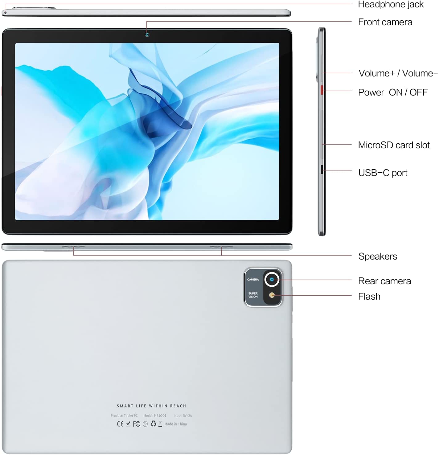 Tablet 10.1 Inch Android 10-2GB RAM 32GB ROM, 6000mAh Battery Quad Core IPS HD Touchscreen Tablets (Silver)