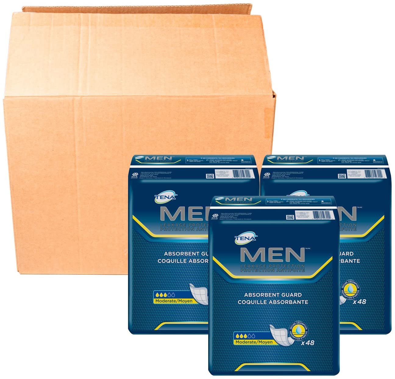 TENA Incontinence Guards for Men, Moderate Absorbency, 144 Count (3 Packs of 48)