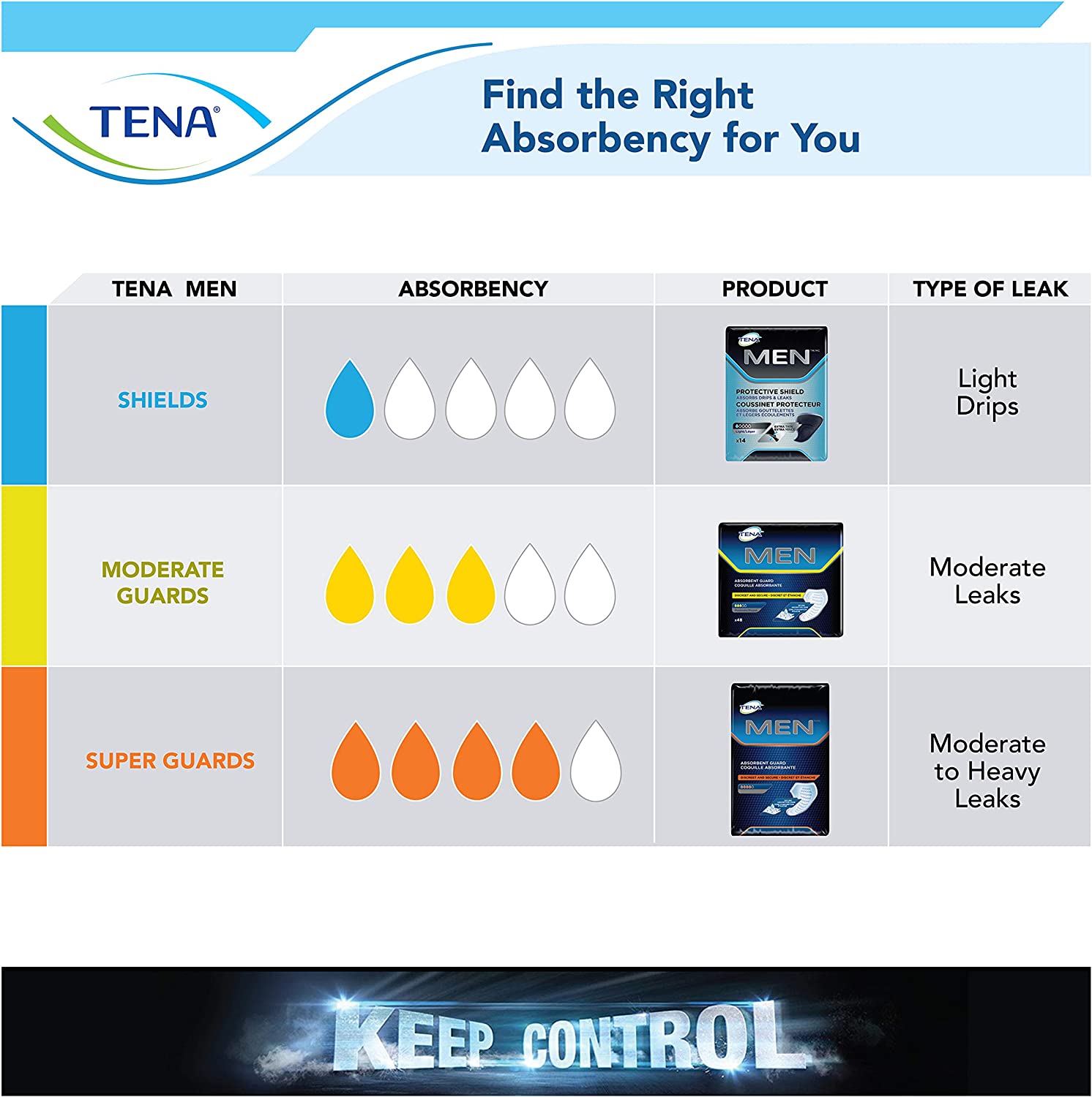 You're not alone. An estimated 3.4 million men experience the Unexpected Leak. Tena Men Protective Guards are anatomically designed for men with the strength and protection you need to keep control and get back to living your life worry free.