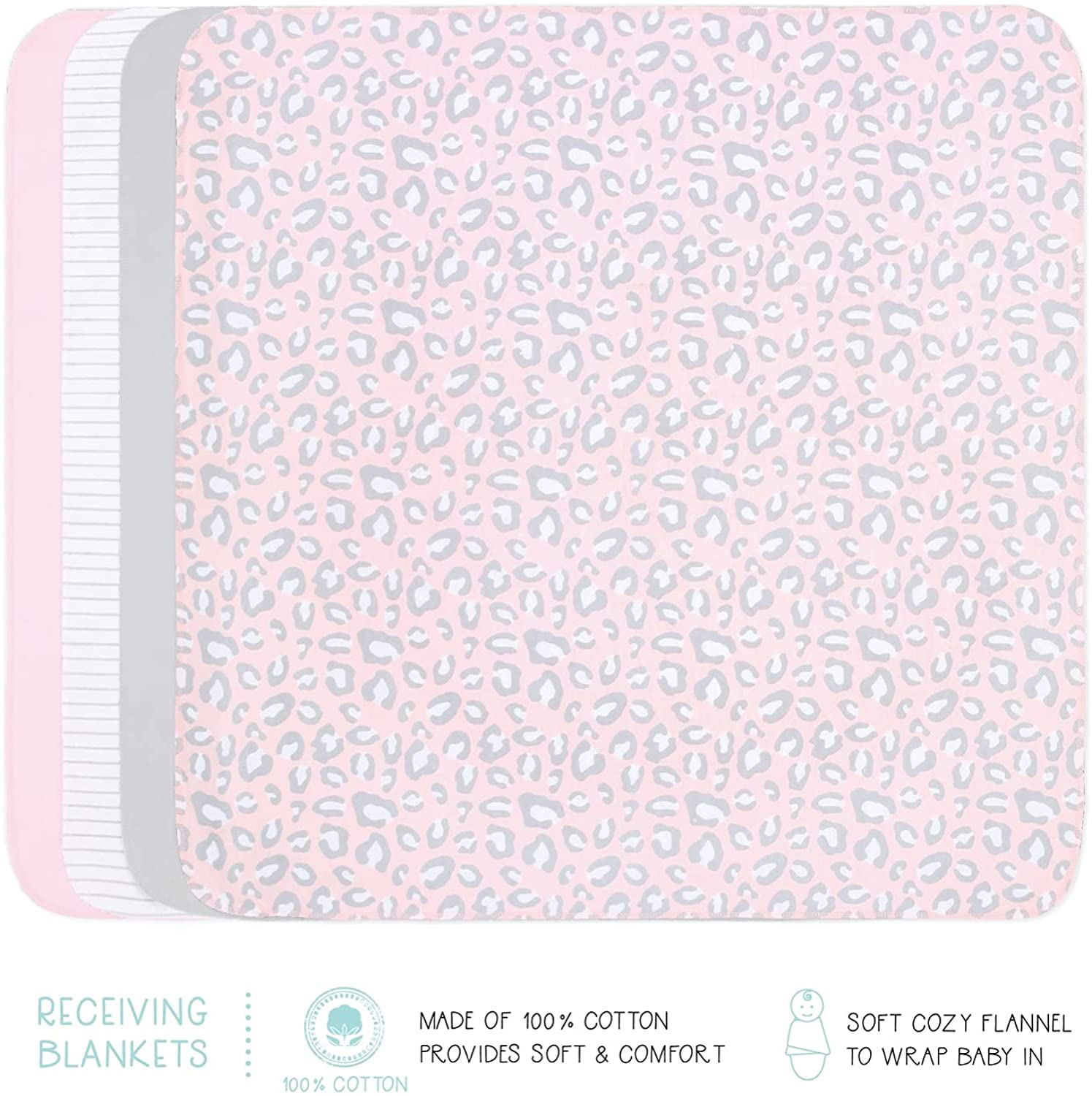 The Peanutshell Newborn Layette Gift Set for Baby Girls | 23 Piece Newborn Girl Clothes & Accessories Set | Fits Newborns to 3 Months | Pink Cheetah Animal Print