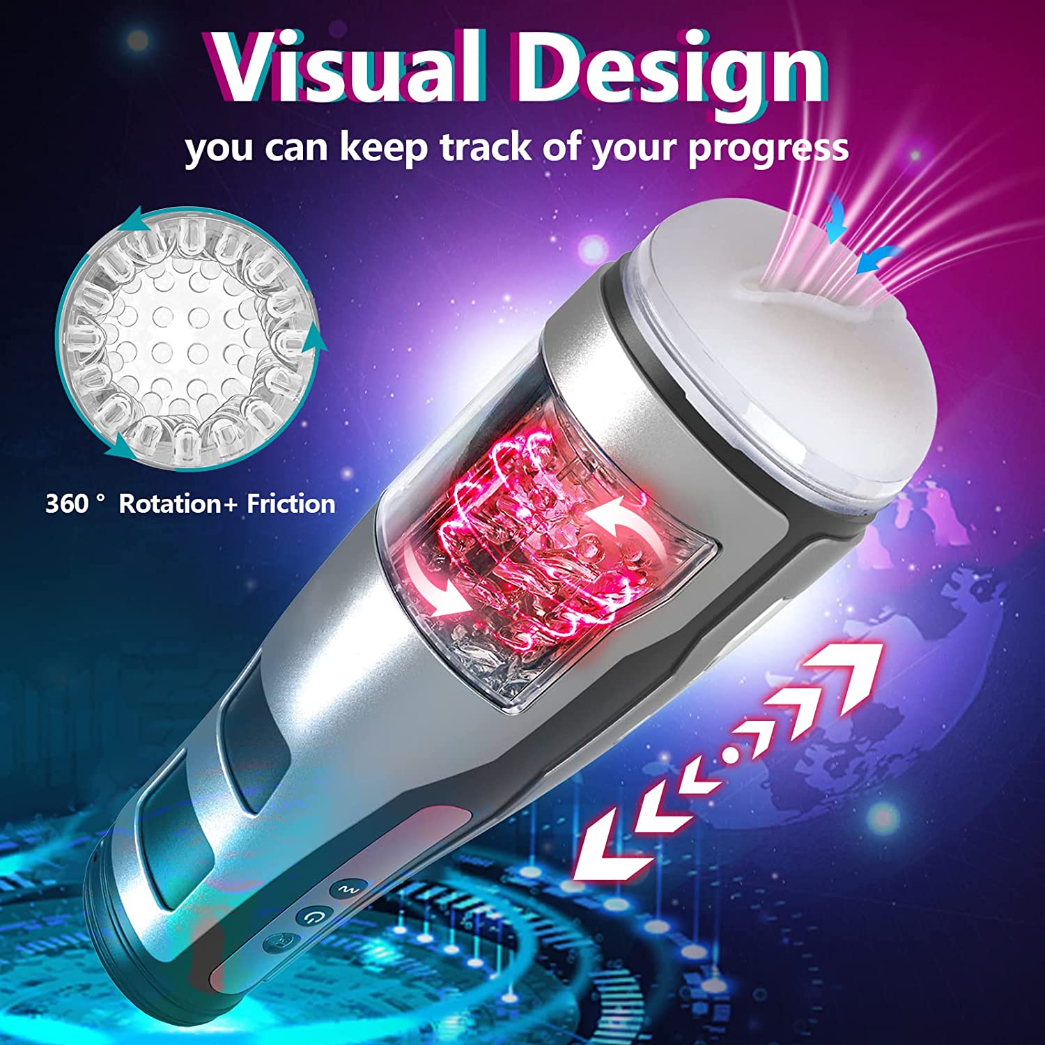 Thrusting Male Masturbator for Men, Automatic Blowjob Machine with Led Display Screen 10 Thrusts Rotations, Hands Free Male Oral Sex Toy for Men Masturbation with Realistic Stroker Pocket Pussy