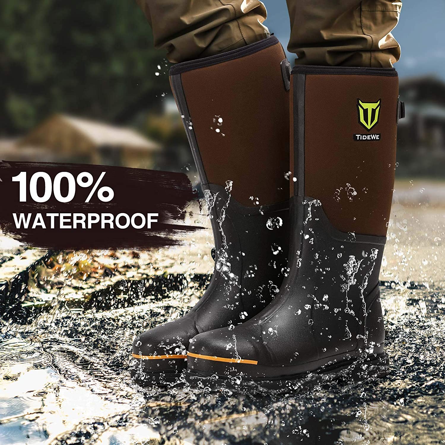 TIDEWE Rubber Work Boot for Men with Steel Toe & Shank, Waterproof Anti Slip Hunting Boot, 6mm Neoprene Hunting Boot, Durable Brown Rubber Boot for Manufacturing, Construction, Farming, Size 5-14