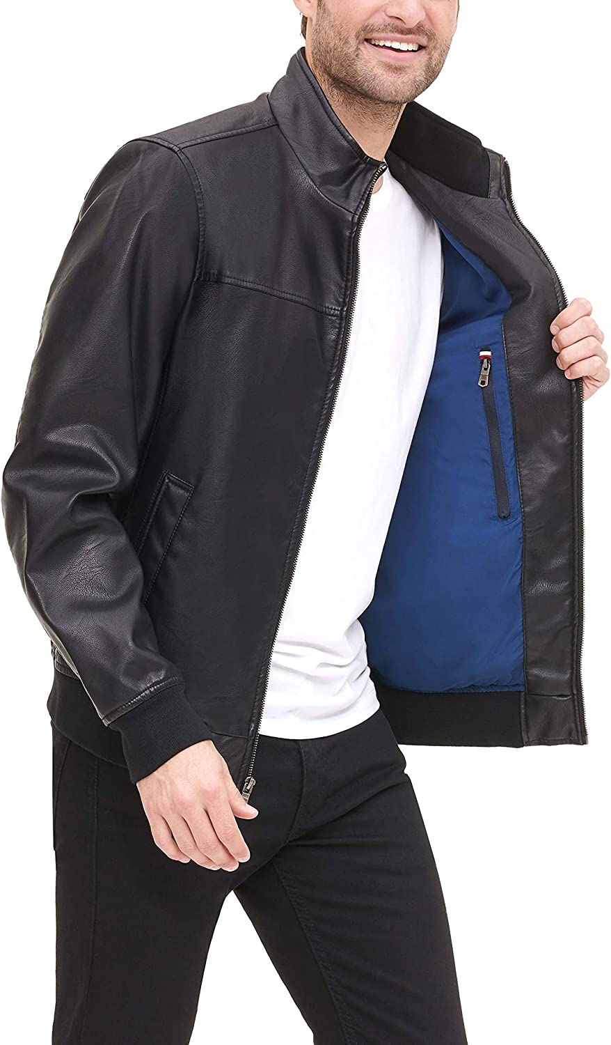 Tommy Hilfiger Men's Smooth Lamb Faux Leather Unfilled Bomber Jacket