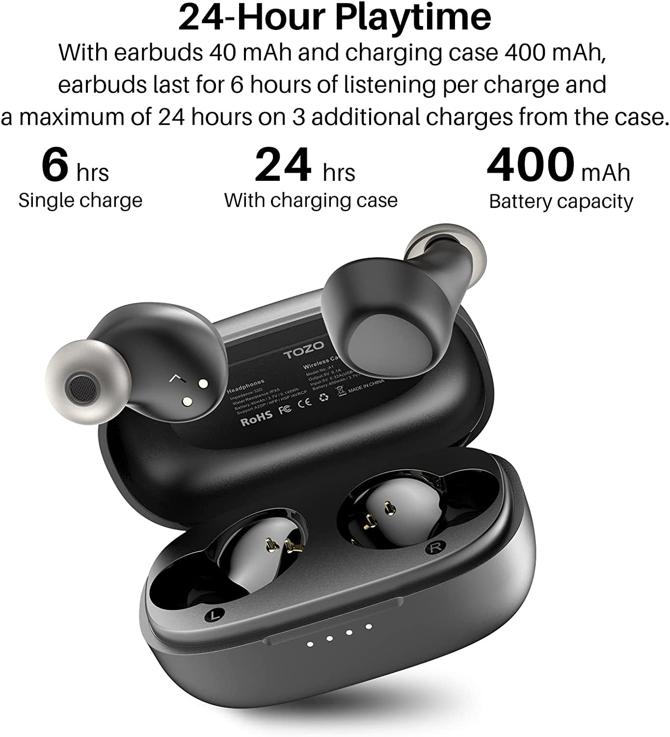 TOZO A1 Mini Wireless Earbuds Bluetooth 5.3 in Ear Light-Weight Headphones Built-in Microphone, IPX5 Waterproof, Immersive Premium Sound Long Distance Connection Headset with Charging Case, Black