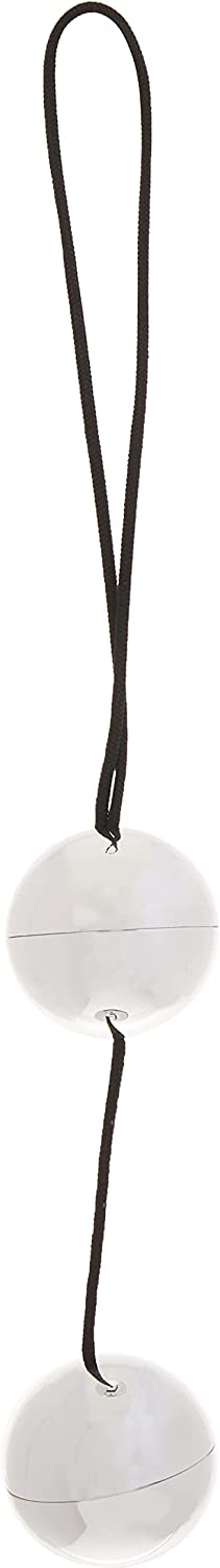 This double set of silver ben wa balls can be used both to tighten and excite. With each movement, subtle vibrations are created by the inner ball rolling gently within the outer ball. With regular use, these balls can help tone the pelvic floor muscles, leading to stronger and more frequent orgasms. Held together by a nylon cord, and tethered with a handy loop for easy retrieval, this set of twin pleasure balls are perfect for anal or vaginal use. With no batteries to replace or noisy motors, the benefits are easy to achieve. Just insert and go! Measurements: 9.5 inches in total length, each ball measures 1.3 inches in diameter.
