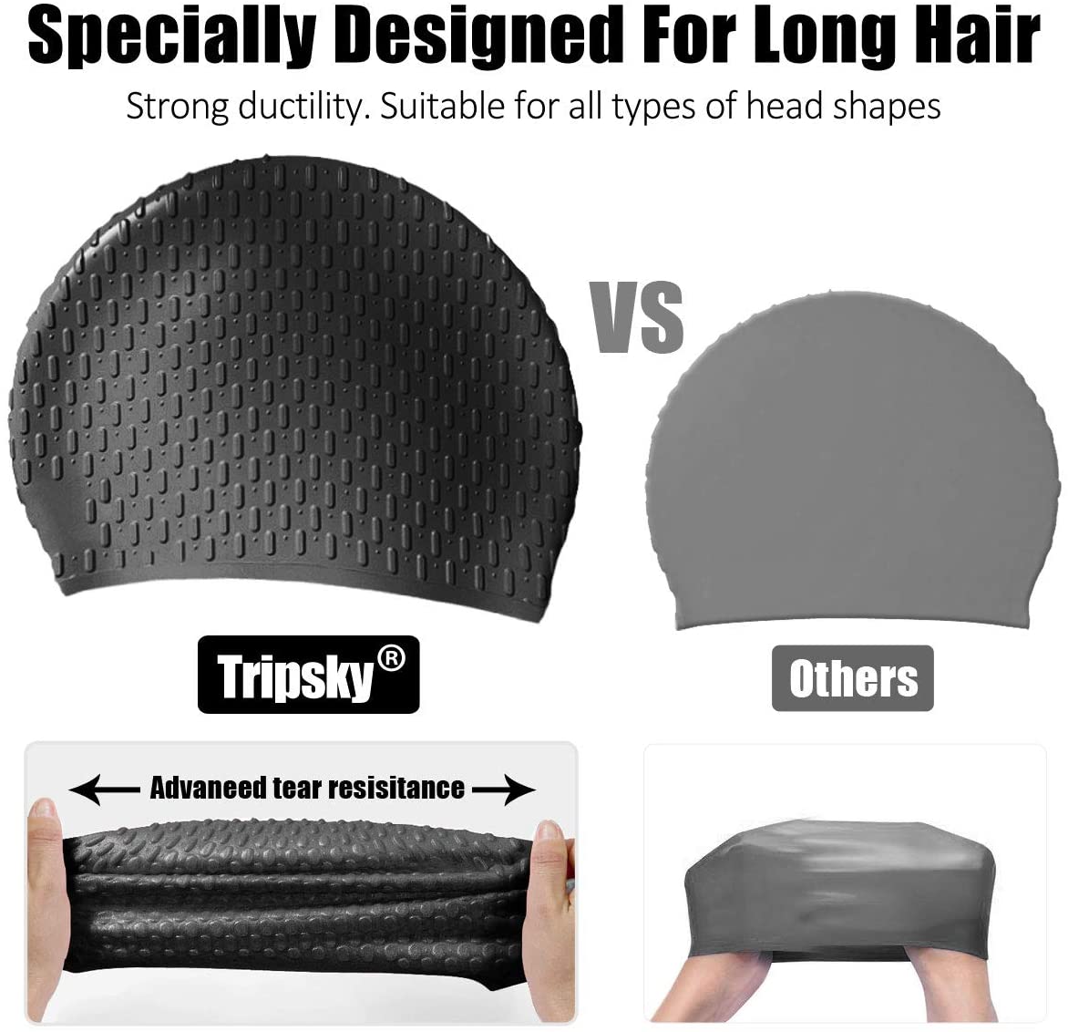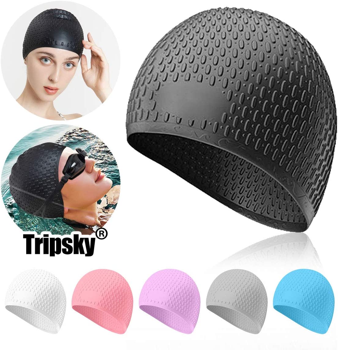 Tripsky Silicone Swim Cap,Comfortable Bathing Cap Ideal for Curly Short Medium Long Hair, Swimming Cap for Women and Men, Shower Caps Keep Hairstyle Unchanged