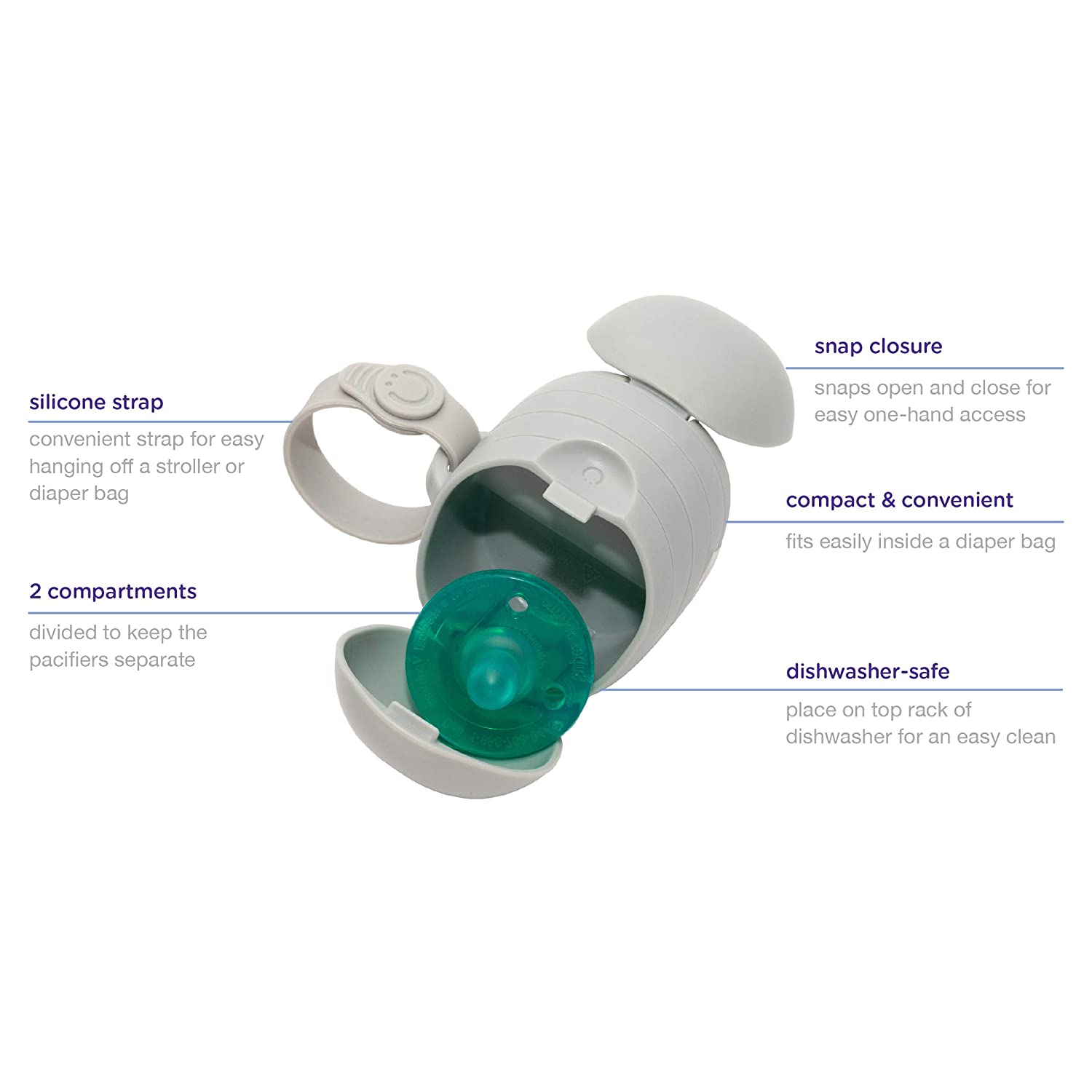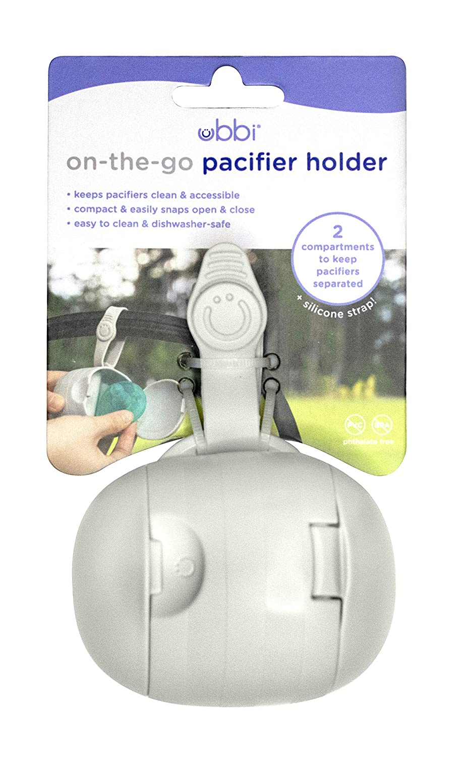 The Ubbi On-the-Go Pacifier Holder keeps pacifiers clean and accessible while you're out and about! Equipped with 2 compartments to keep the pacifiers separated and a silicone strap for easy hanging from a stroller or diaper bag. The pacifier holder is compact and easily snaps open and close and is easy to clean as well as dishwasher safe. About us: Ubbi is a globally recognized brand, designing innovative and creative products with parents and children in mind. Under the Ubbi name, you will find unique, quality products that are easy to use, and simplify parents' lives while keeping babies happy and safe as can be. Our steel, odor locking diaper pail was a first on the market in 2011, and has become our flagship item. With the same customer focused philosophy and innovative design capabilities, we have expanded into a variety of product categories: feeding, modern and trendy on-the-go items, bath toys and functional accessories. From concept to final creation, the Ubbi team works together every step of the way to bring the best in design and value.