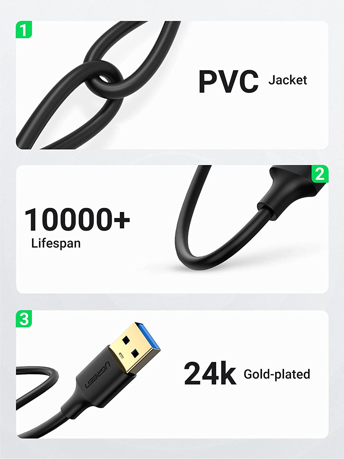 UGREEN USB to USB Cable, USB 3.0 Male to Male Type A to Type A Cable for Data Transfer Compatible with Hard Drive, Laptop, DVD Player, TV, USB 3.0 Hub, Monitor, Camera, Set Up Box and More 1.5FT