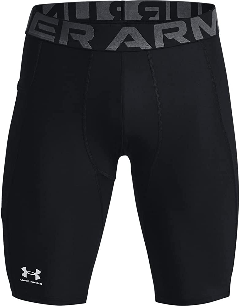 HeatGear® Armour is our original performance baselayer—the one you put on first and take off last. So we made it extra comfortable by wicking sweat and stretching so you can move. No athlete can go without it. Super-light HeatGear® fabric delivers superior coverage without weighing you down. Strategic mesh panels for added ventilation where you need it. Material wicks sweat & dries really fast. Ergonomic design keeps seams off high abrasion areas & increases durability. Wide, exposed elastic waistband with wordmark detail. Updated gusset design provides ultimate support & comfort. Drop-in Strength Pocket™ on right side for easy storage. Inseam: 9"". No fly. Compression: Ultra-tight, second-skin fit. 84% Polyester/16% Elastane.