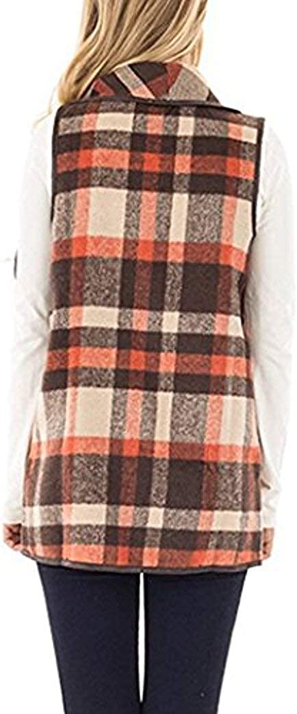 Unidear Womens Casual Lapel Open Front Plaid Vest Cardigan Coat with Pockets