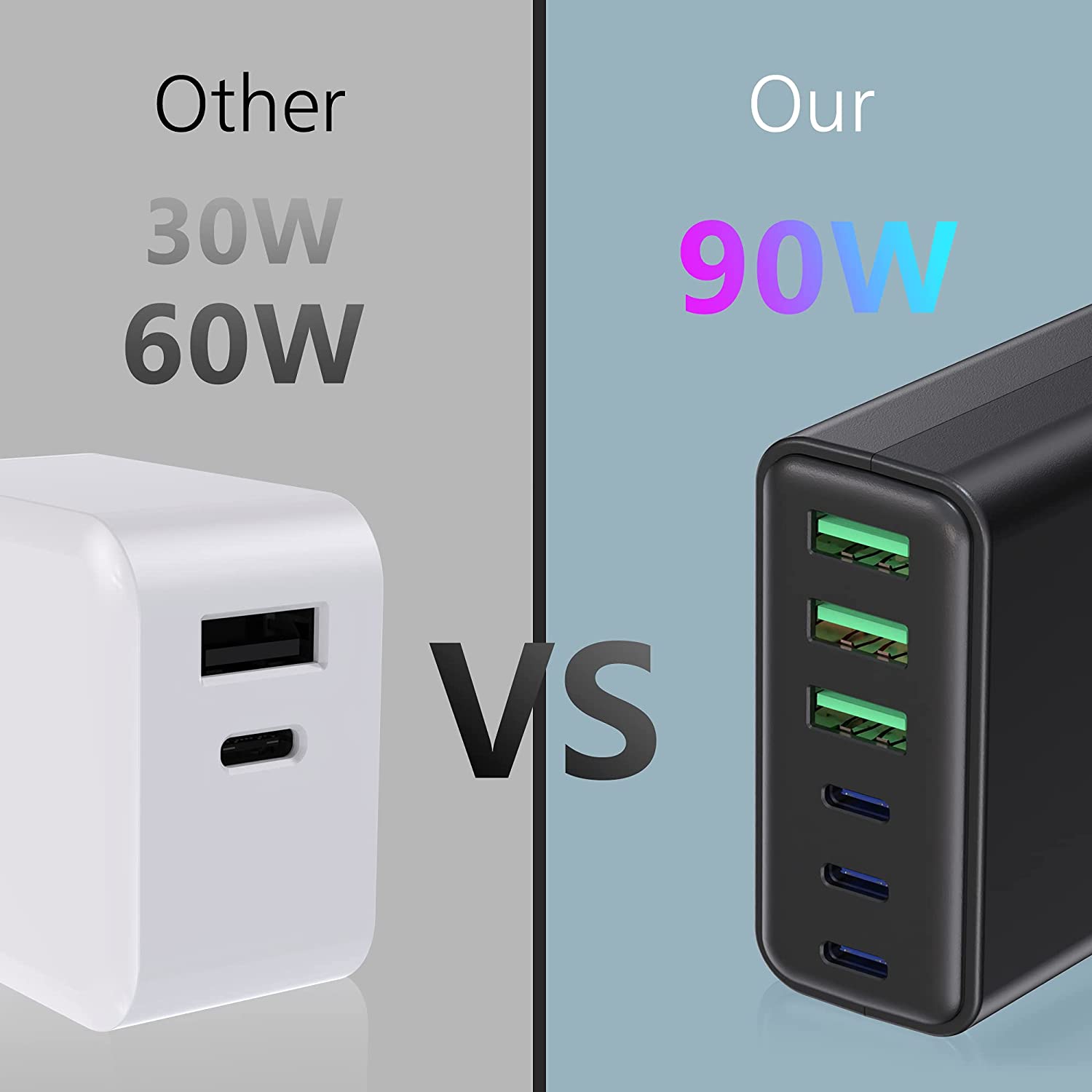 USB C Fast Charger, Sacrack 90W 6 Port USB C Charging Station, Portable Fast USB C Wall Charger PD Adapter 3 USB C and 3 QC USB A for All iPad, iPhone 13 12 11 Max Mini, Pixel Samsung Galaxy