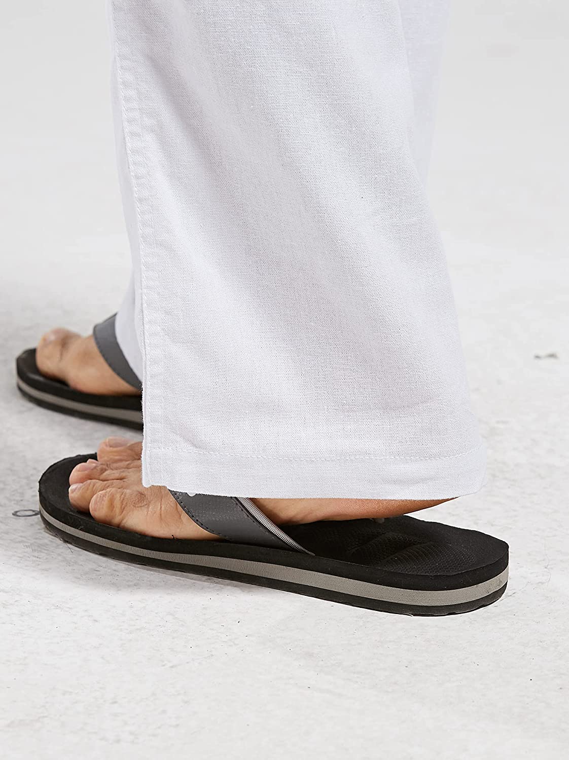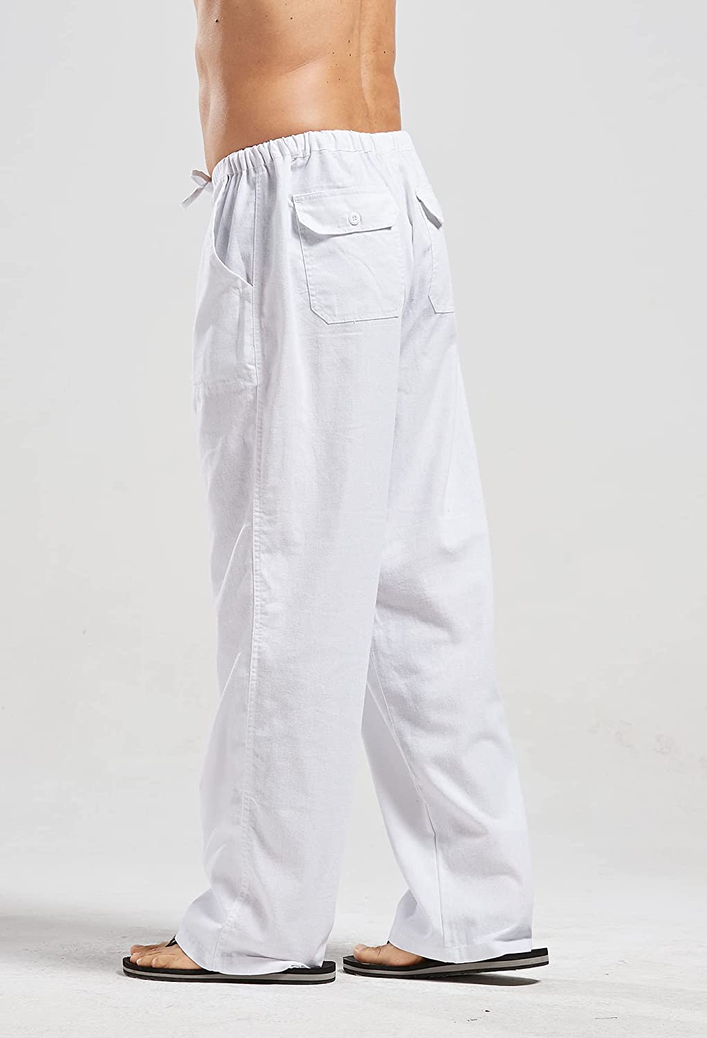 utcoco Qiuse Men's Casual Loose Fit Straight-Legs Stretchy Waist Beach Pants