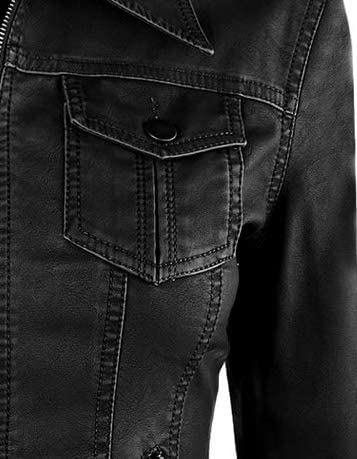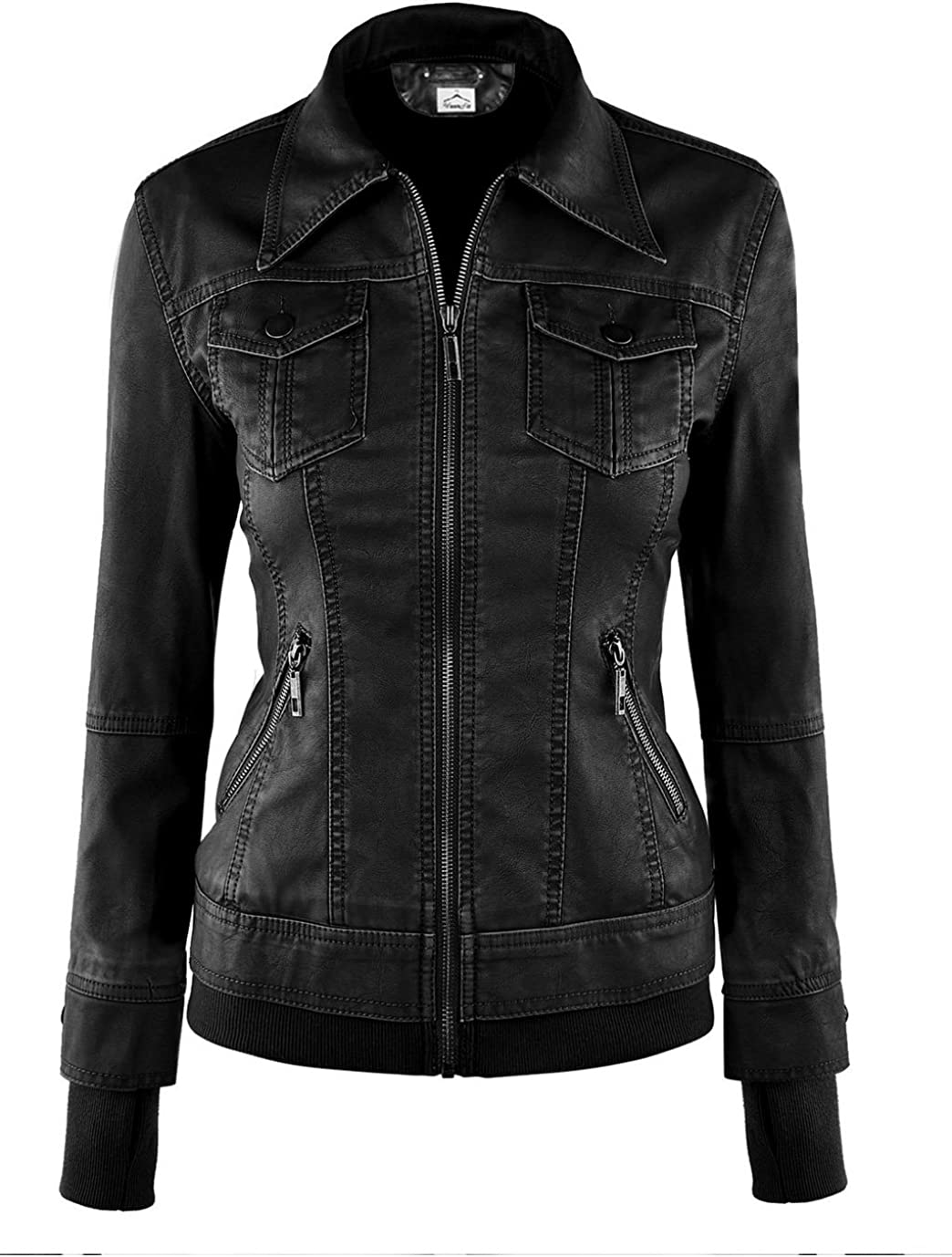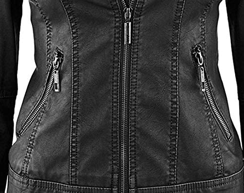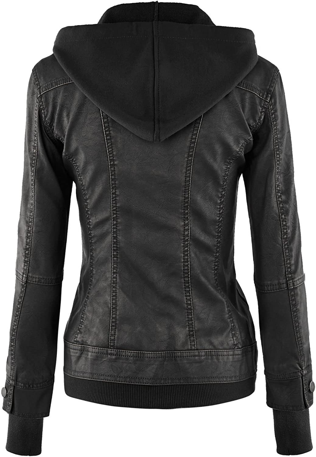 VearFit Women's Sparteens Real Leather Jacket Bomber Removable Hood for Women