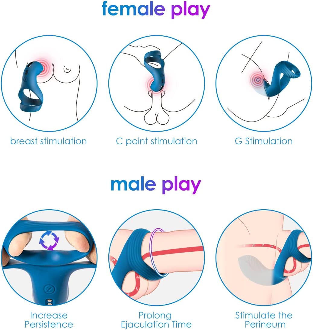 Vibrating Cock Ring Sex Toys - ZEMALIA Penis Ring with 10 Vibrations for Men Erection Enhancing and Perineum Stimulator 3 in 1 Male Masturbator or Female G-Spot Vibrator, Adult Toy for Couples Fun