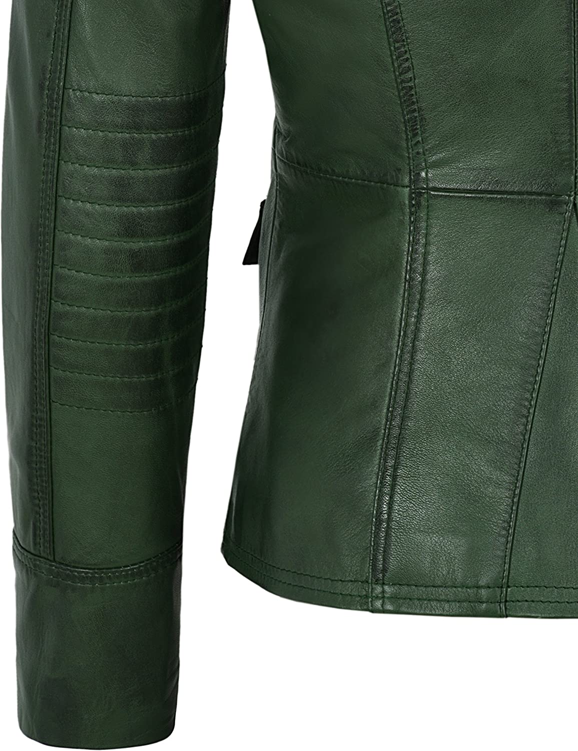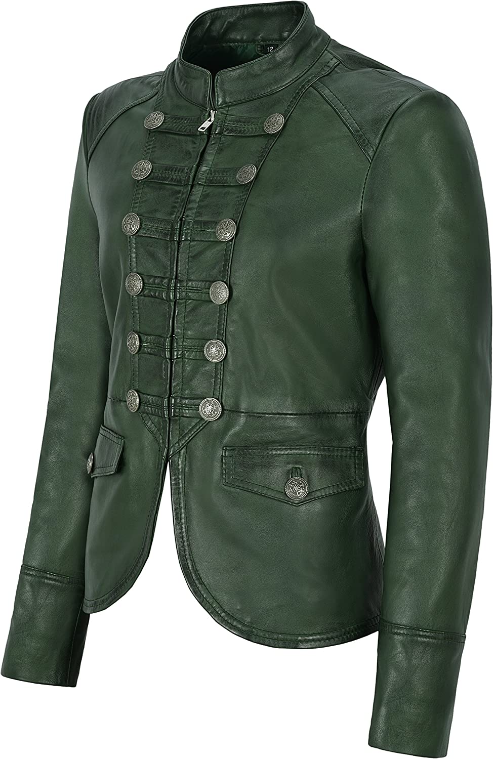 'Victory' Ladies Dark Green Military Parade Style Soft Real Nappa Leather Jacket 8976