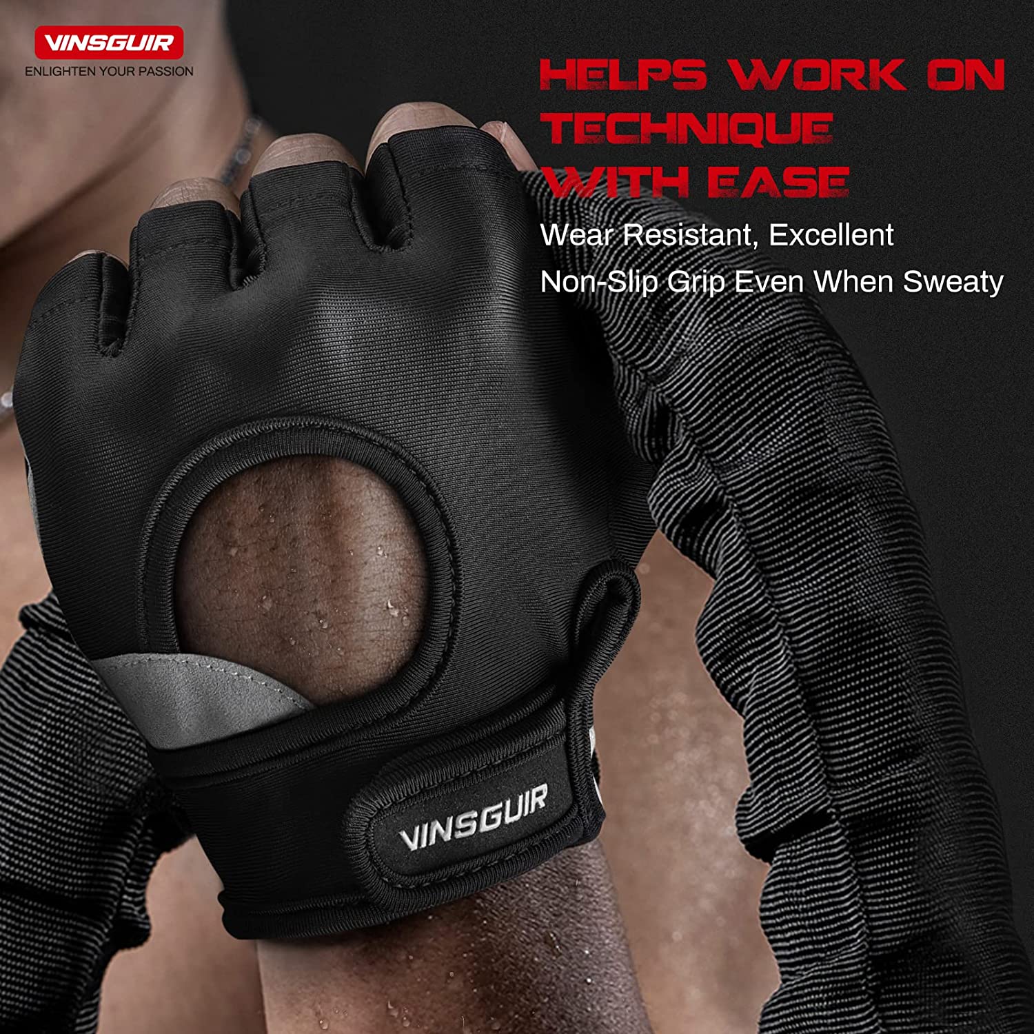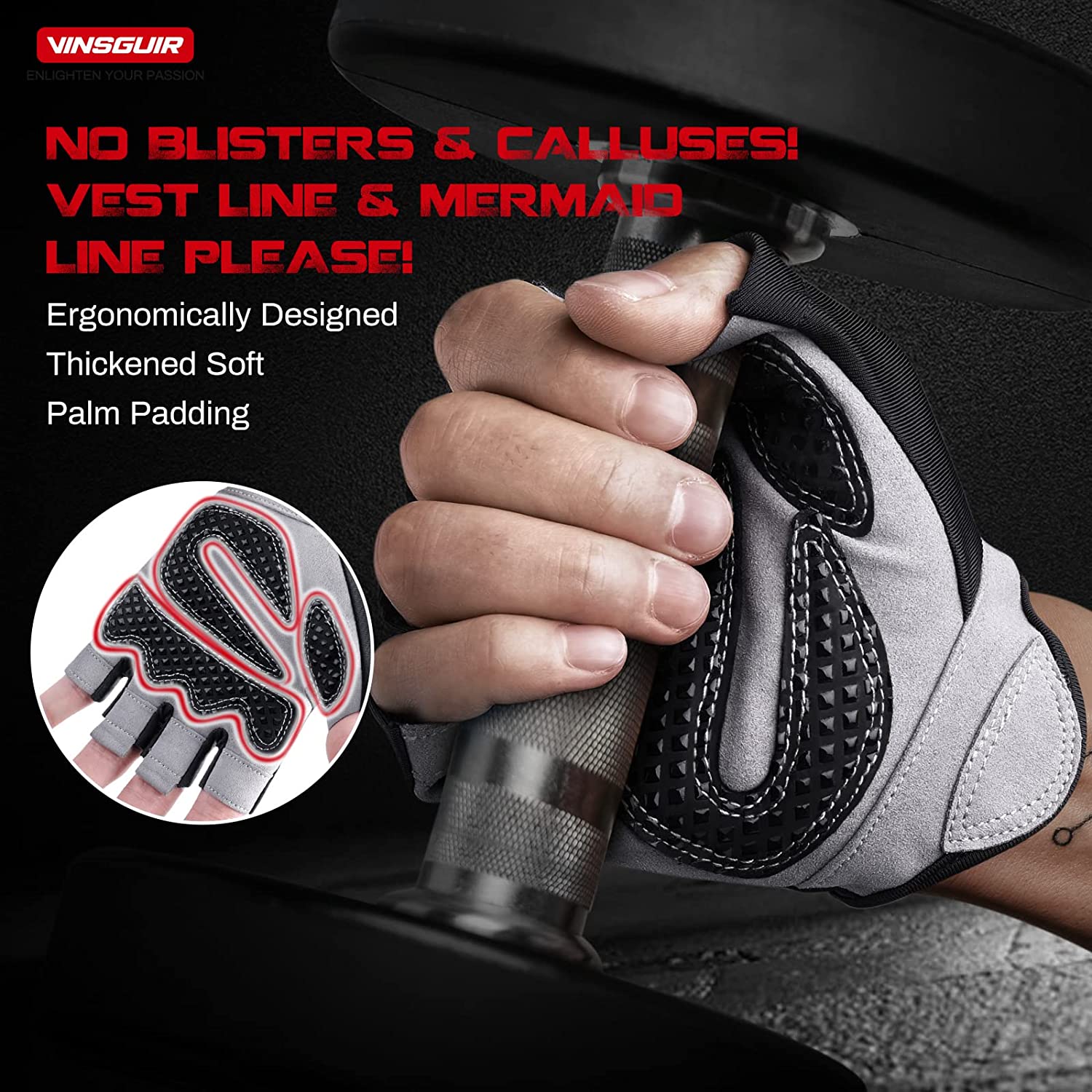 Vinsguir Workout Gloves for Men and Women, Fingerless Weight Lifting Gloves for Exercise, Lightweight Breathable Gym Gloves for Weightlifting, Fitness, Training, Climbing, Cycling and Rowing