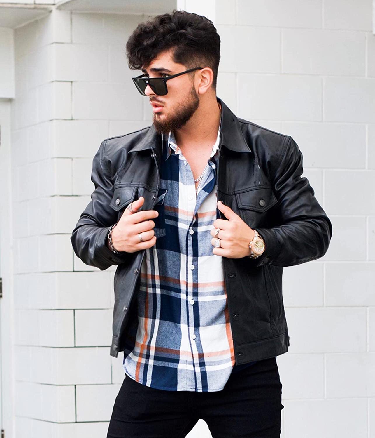 Vintage Trucker Jacket Men - Real Lambskin Mens Leather Jackets