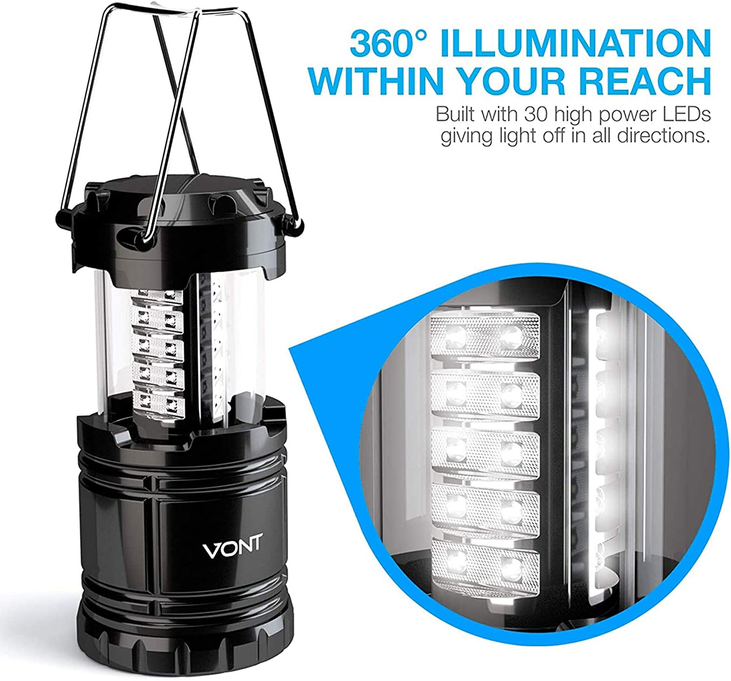Vont 2 Pack LED Camping Lantern, Super Bright Portable Survival Lanterns, Must Have During Hurricane, Emergency, Storms, Outages, Original Collapsible Camping Lights/Lamp (Batteries Included)