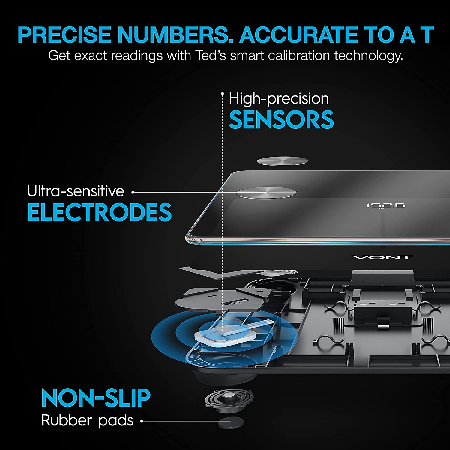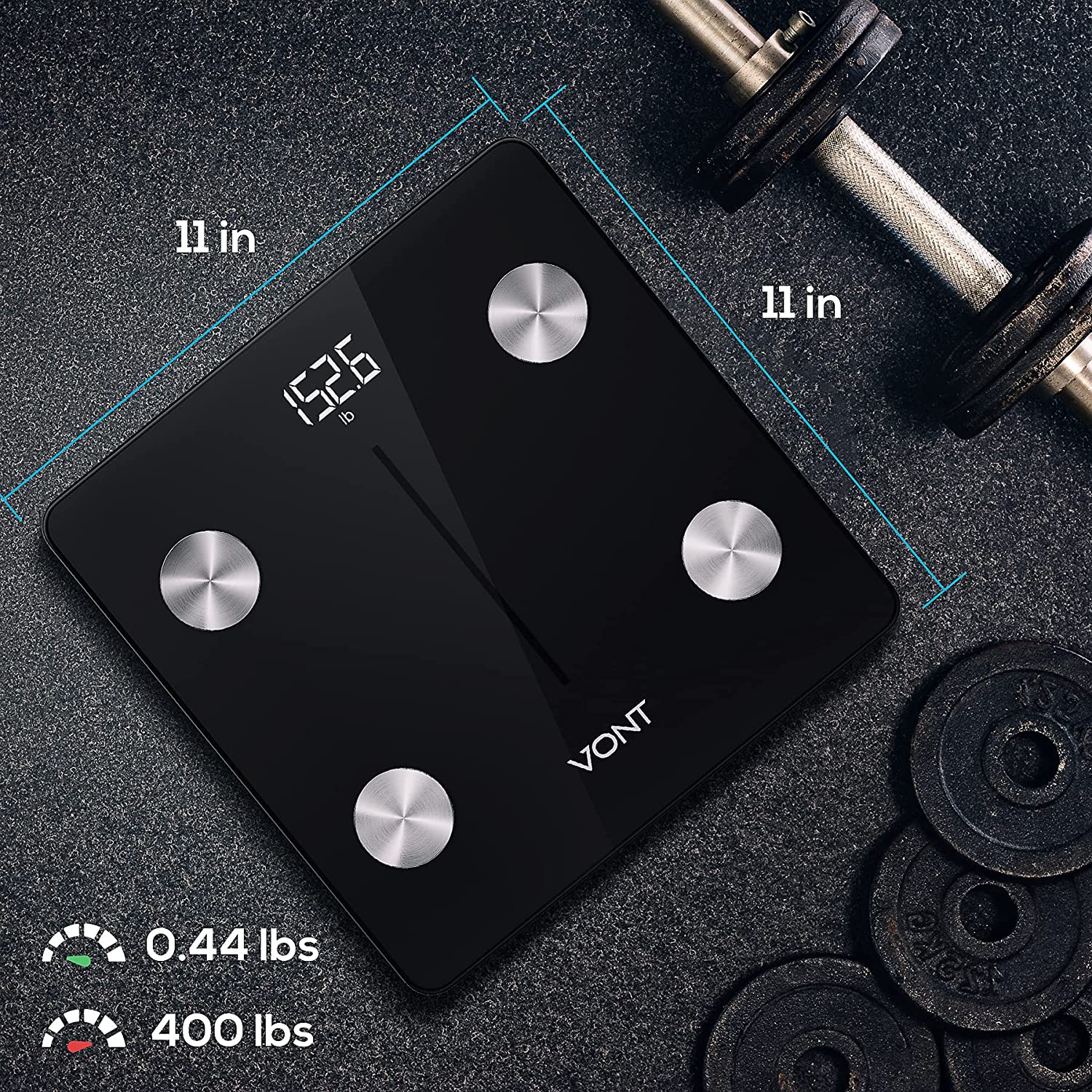 Vont Smart Scale, Wireless Body Fat Scale, Weight Scale, BMI Digital Bathroom Scale, Precise Bluetooth Scale for Weight Loss & Body Weight, 13 Measurements, LCD Backlight Display, 400 lbs (Black)