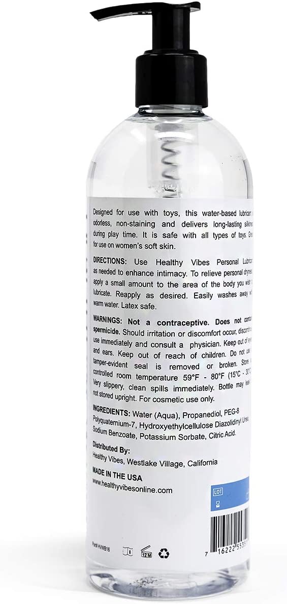 Water Based Sex Lube 16 oz by Healthy Vibes Intimate Personal Lubricant Stain Free & Condom Safe Adult lube for Men, Women, and Couples