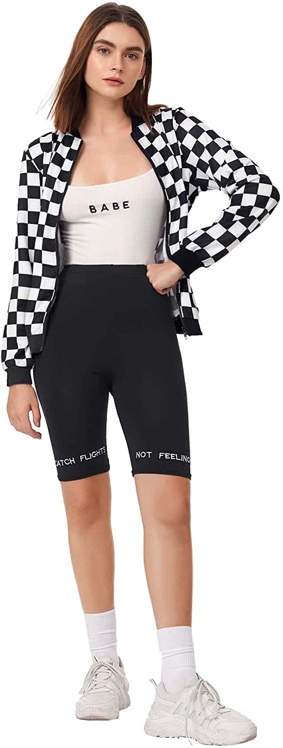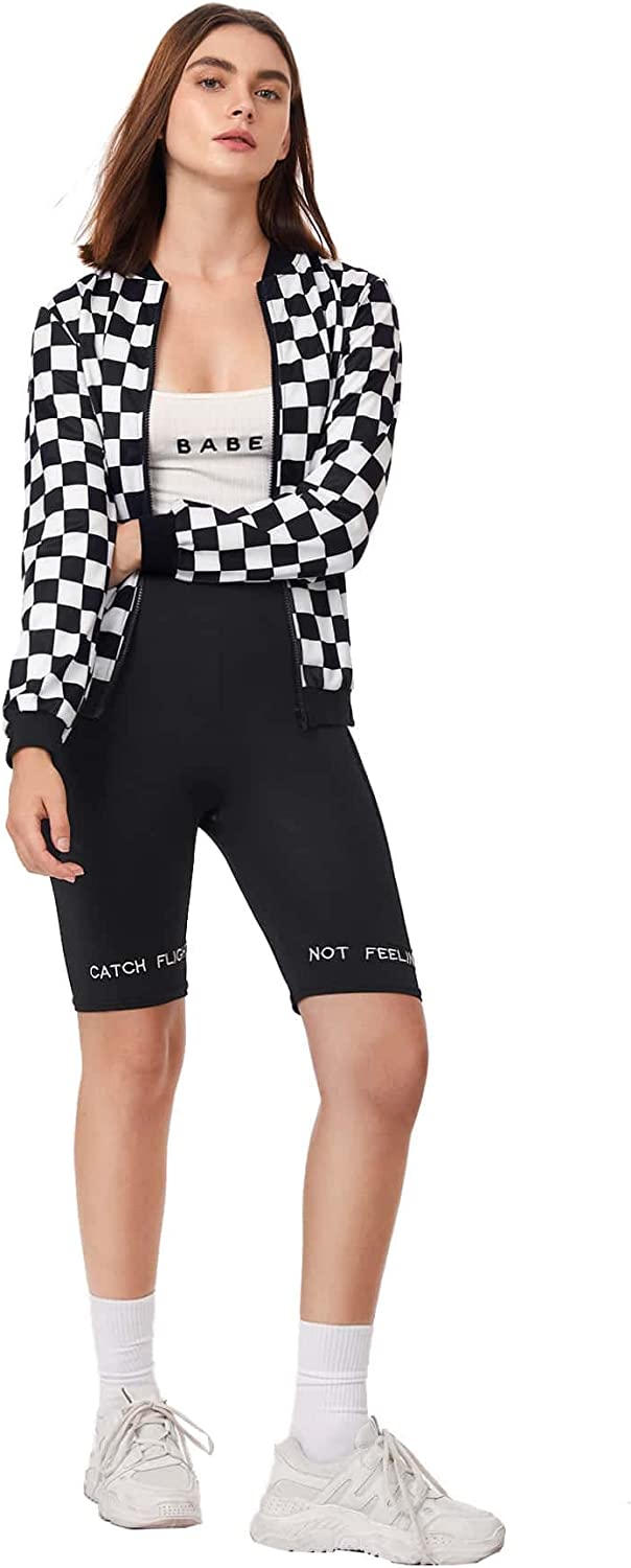 WDIRARA Women's Zip Front Plaid Print Long Sleeve Stand Collar Casual Jacket