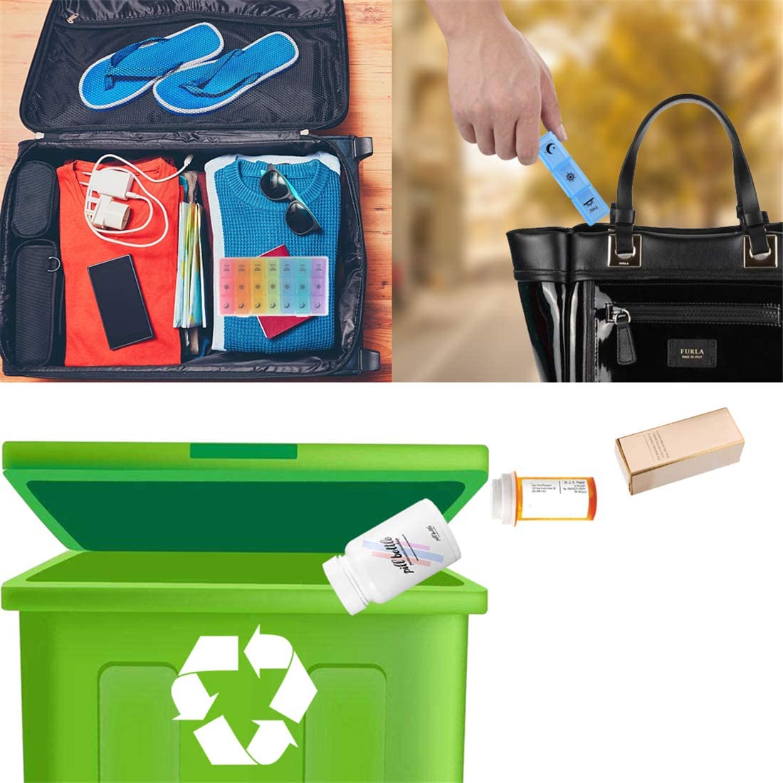 Weekly Pill Organizer,3-Times-A-Day 7 Day Pill Box Large Compartments Moisture-Proof Pill Case Medication Reminder Portable Travel Container for Vitamins Fish Oil Compartments Supplements