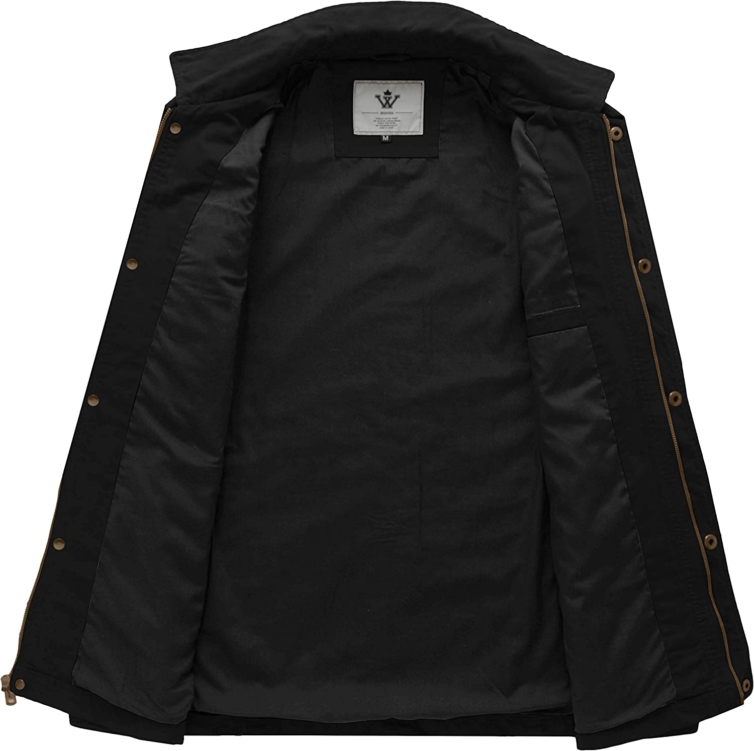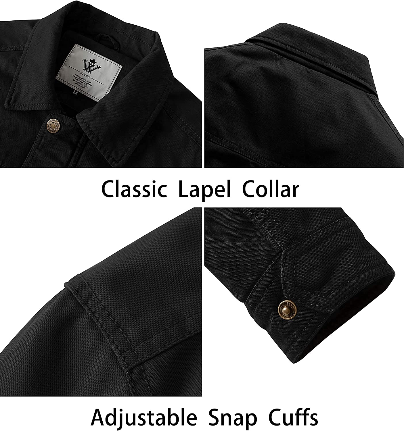 WenVen Men's Casual Canvas Cotton Military Lapel Jacket