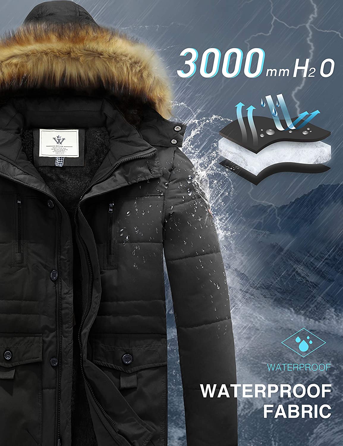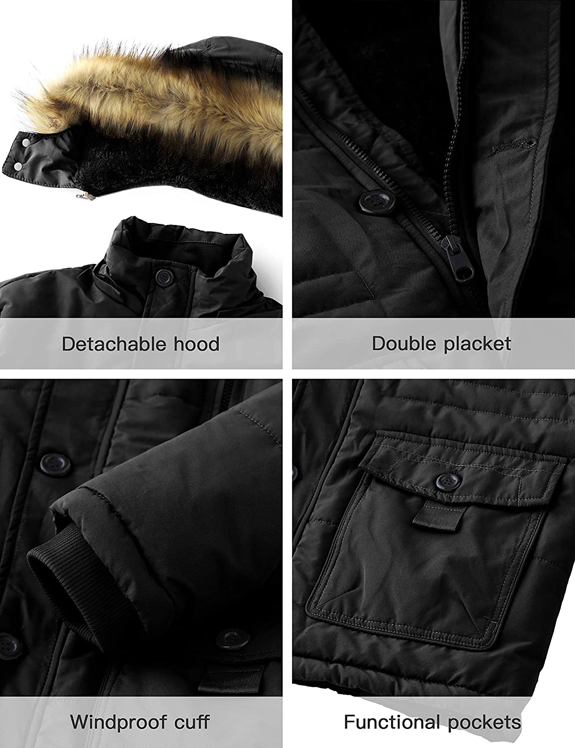 WenVen Men's Winter Coat Warm Parka Jacket with Faux Fur Removable Hood