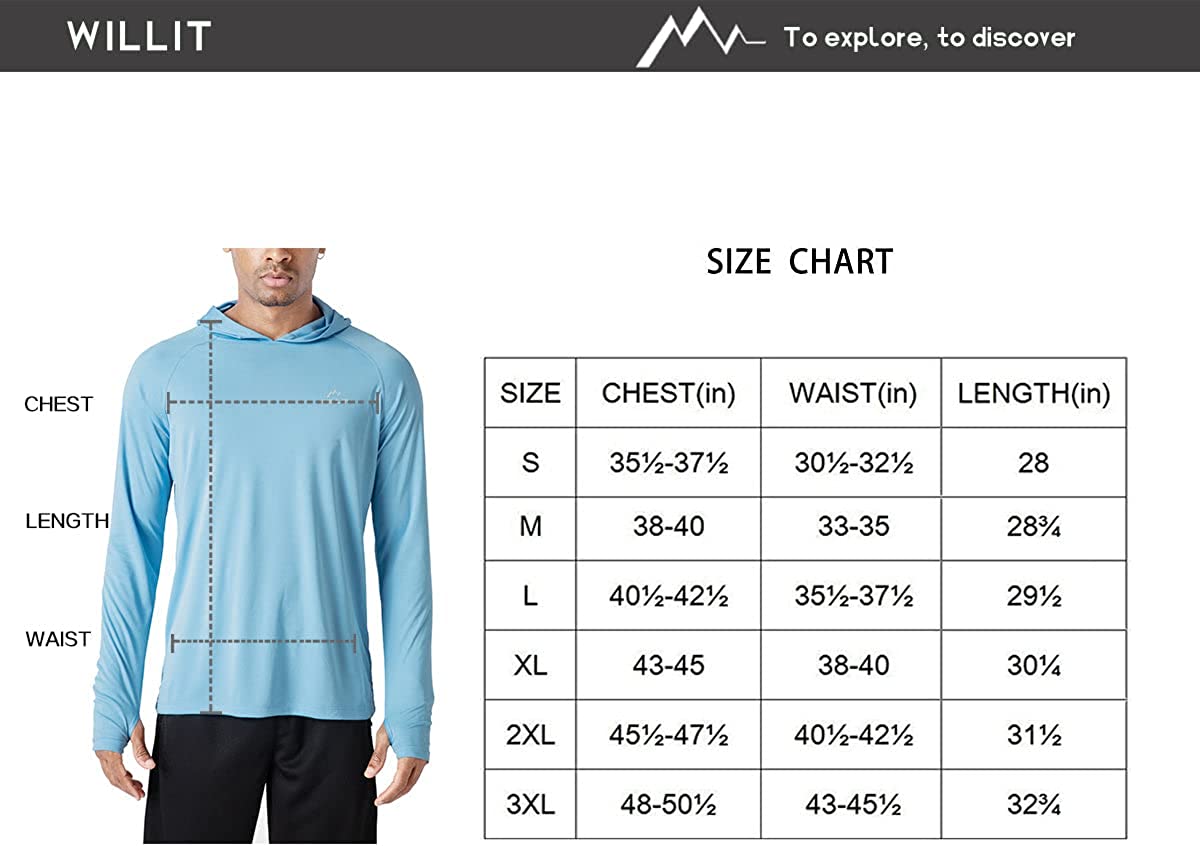 Willit Men's UPF 50+ Sun Protection Hoodie Shirt Long Sleeve SPF Fishing Outdoor UV Shirt Hiking Lightweight