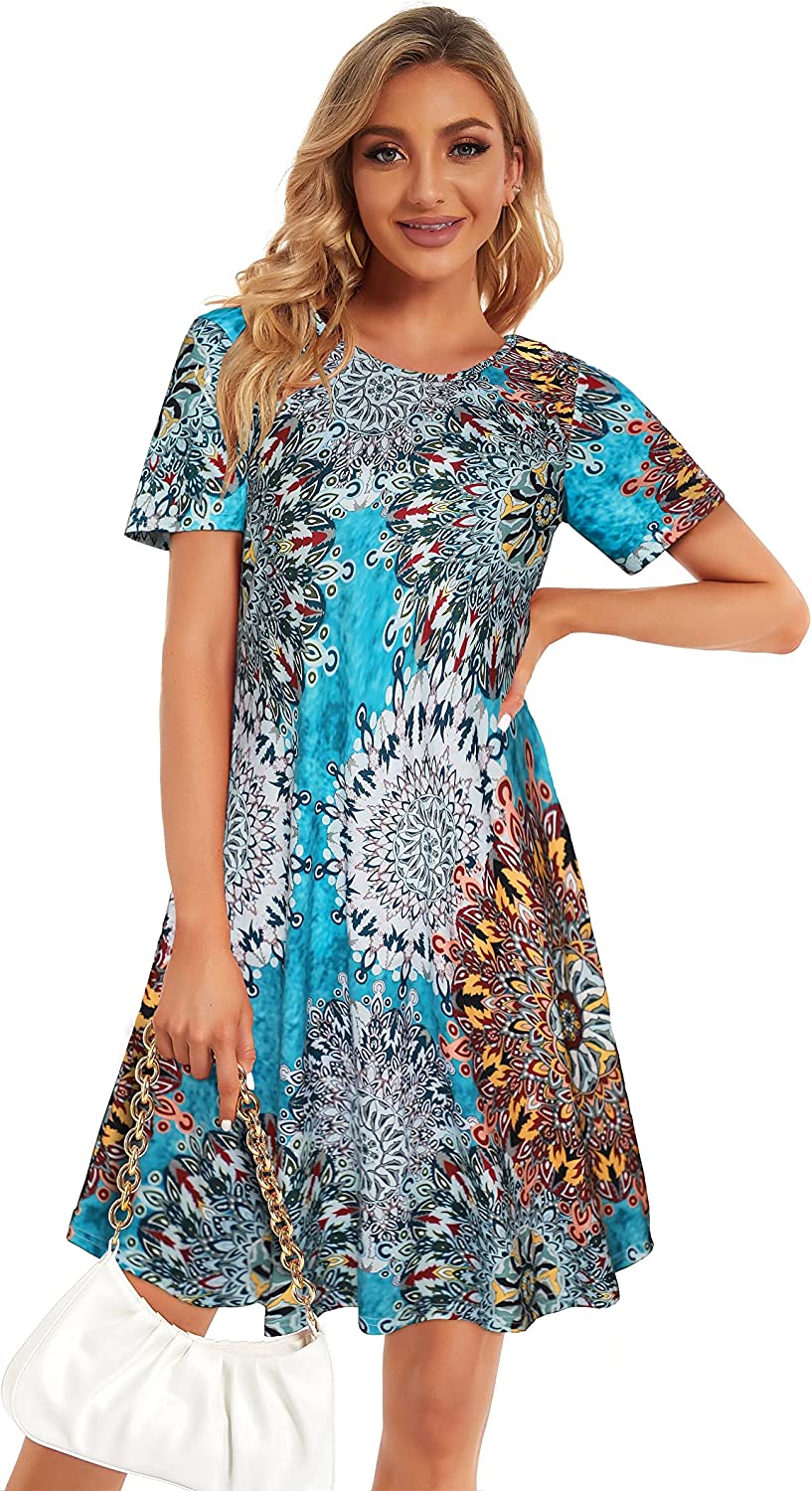 Women Summer Dress Tshirt Beach Sundress Casual Plus Size Flowy Swing Short Sleeve Loose Tunic