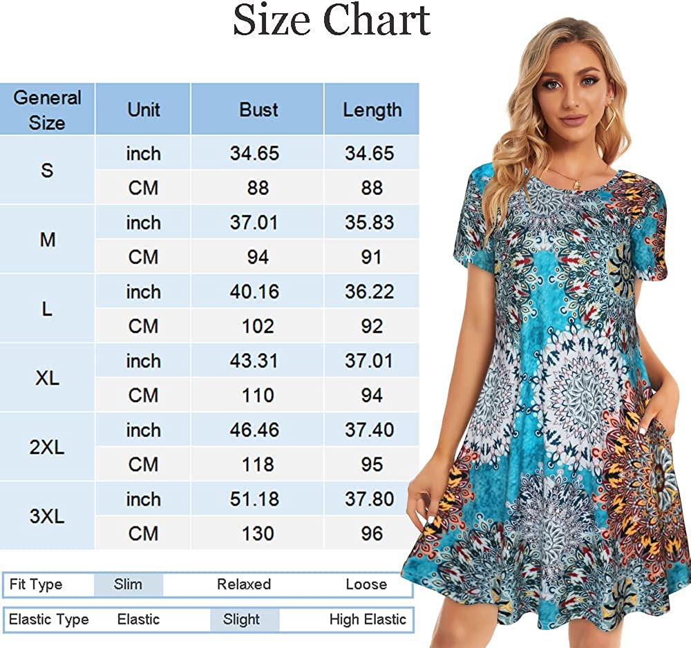 Women Summer Dress Tshirt Beach Sundress Casual Plus Size Flowy Swing Short Sleeve Loose Tunic
