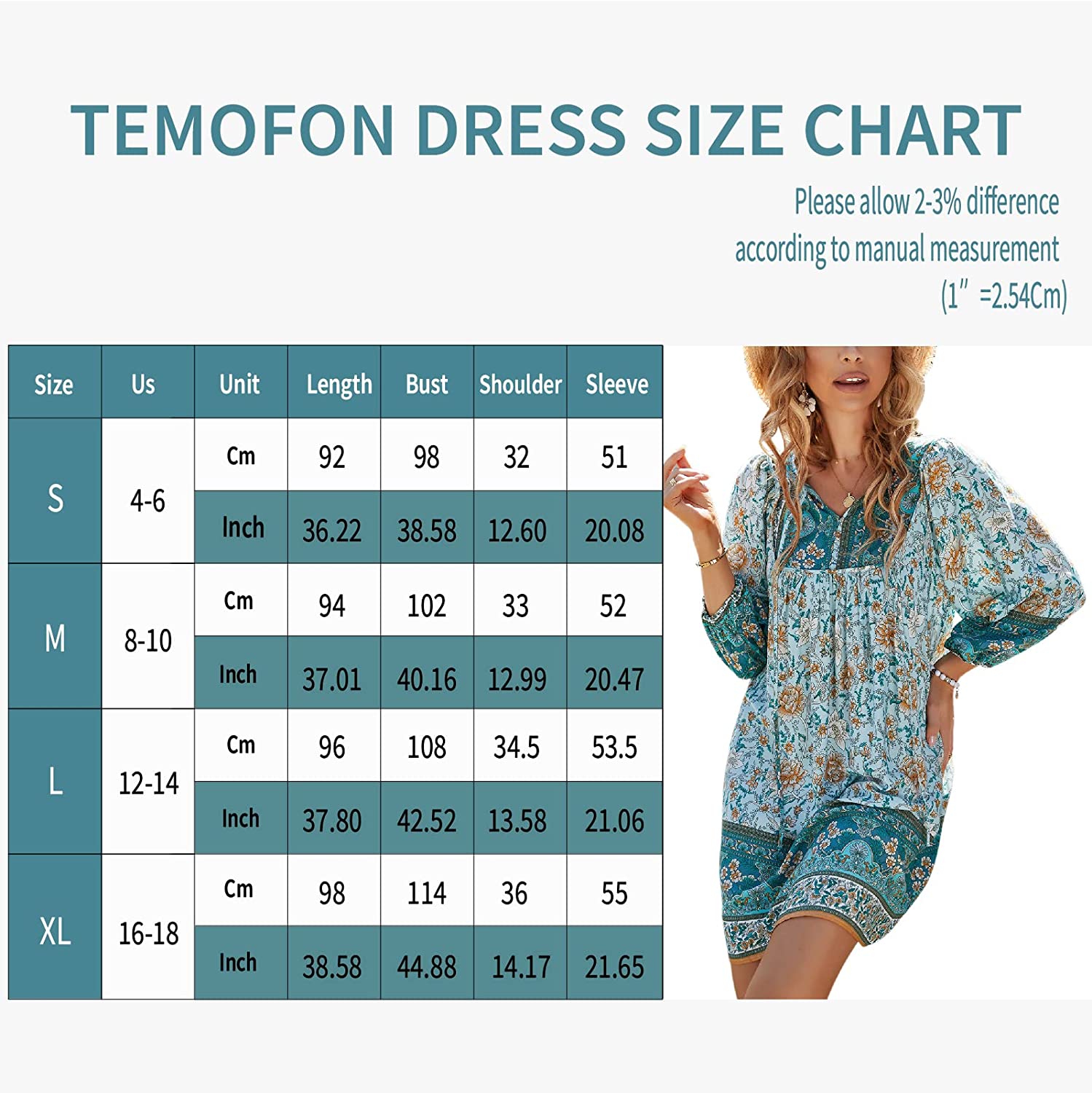 Women's Boho Dress Summer Mini Floral 3/4 Long Sleeve V Neck Flowy Loose Casual Beach Dresses