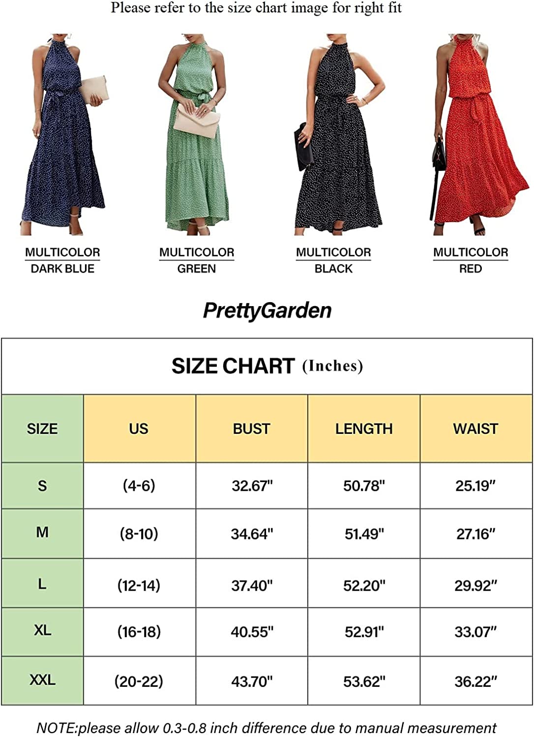 Women's Casual Halter Neck Sleeveless Floral Long Maxi Dress Backless Loose Ruffle Sundress with Belt