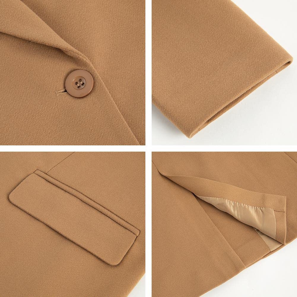 Womens Casual Long Sleeve Wool Blend Pea Coat Lapel Notched Collar Warm Midi Jacket Overcoat