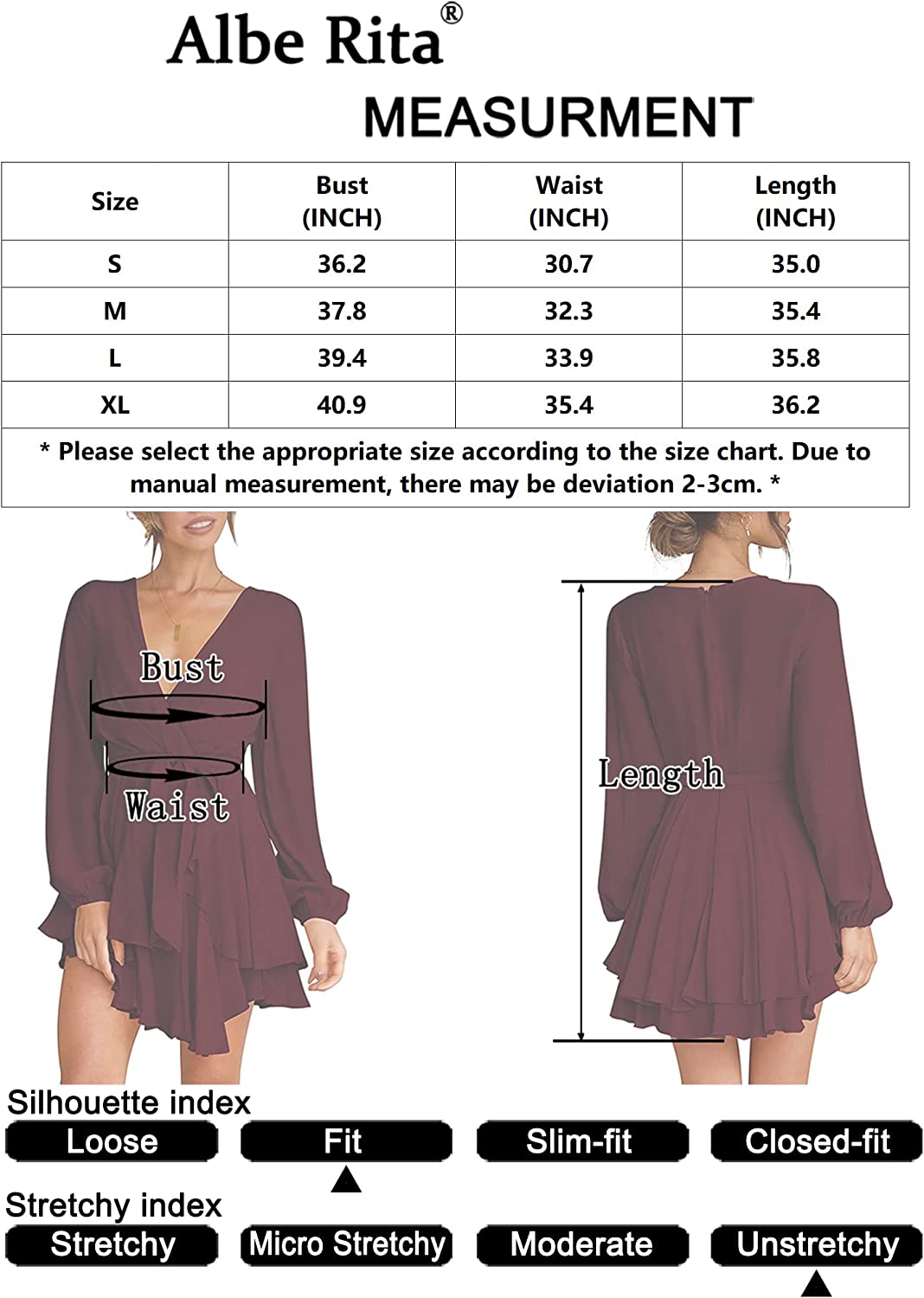 Women's Dress Deep V-Neck Long Sleeve Waist Tie Ruffle Mini Swing Skater Homecoming Dresses