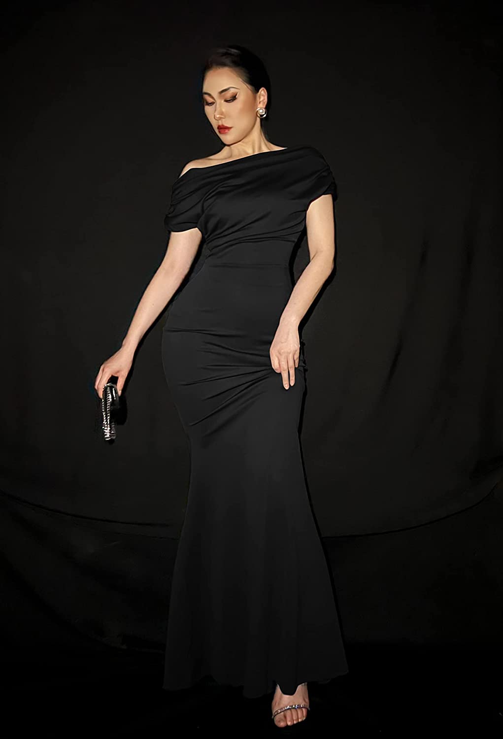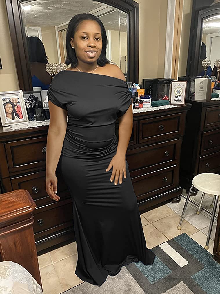 Women's Elegant Sleeveless Off Shoulder Bodycon Long Formal Party Evening Dress