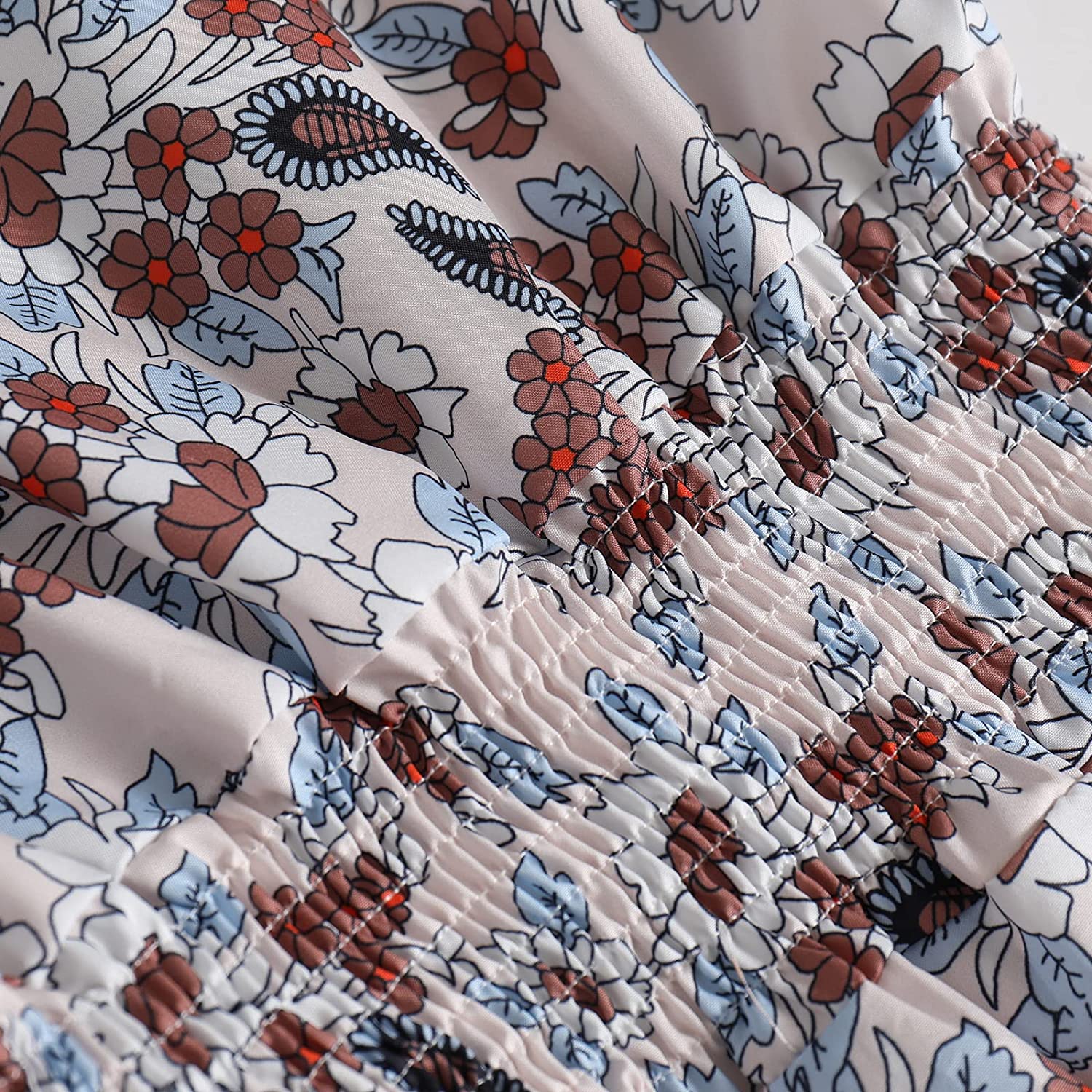 Women's Floral V-Neck Short Sleeve Dress Ruffle Slim Waist Dress