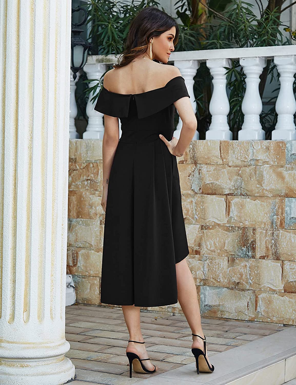 Women's Off Shoulder High Low A Line Wedding Guest Party Cocktail Dress