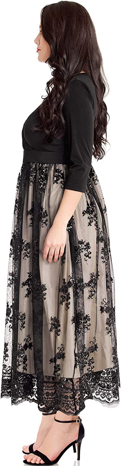 Women's Plus Size Sequin 3/4 Sleeves Evening Gown Party Long Maxi Dress