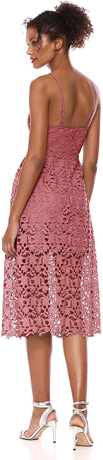 Sweet, playful and party-ready, this lace midi-length dress has adjustable straps and an airy silhouette that's perfect for your next occasion.