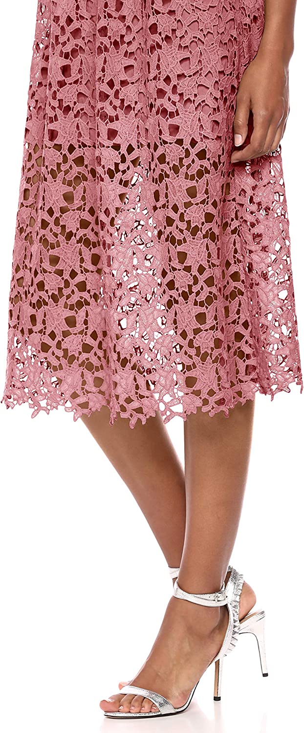 Sweet, playful and party-ready, this lace midi-length dress has adjustable straps and an airy silhouette that's perfect for your next occasion.