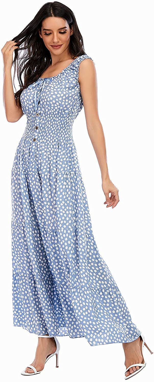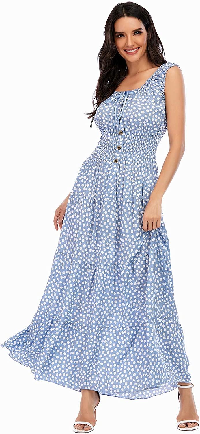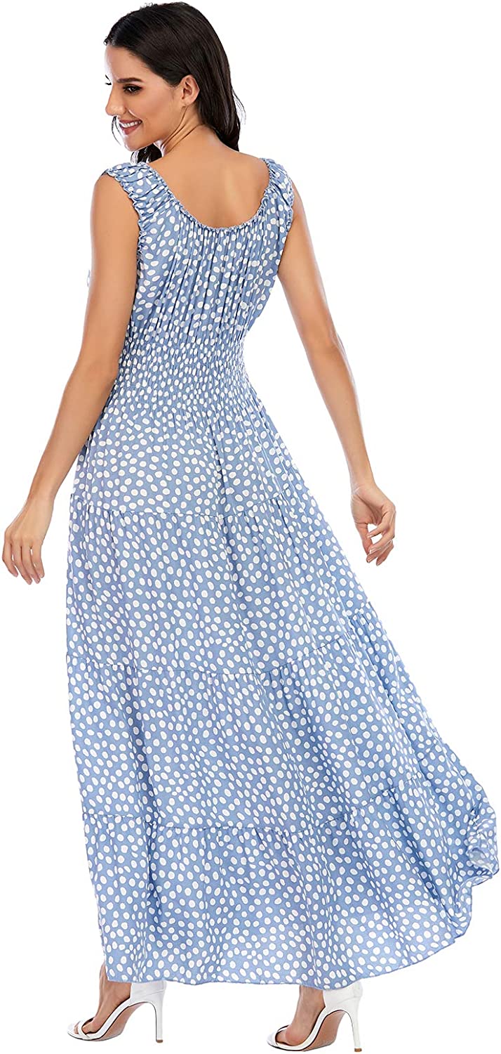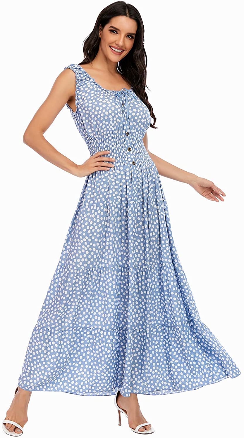 Women’s Sleeveless Summer Flowy Printed Boho Maxi Long Dress Dresses for Wedding Guest