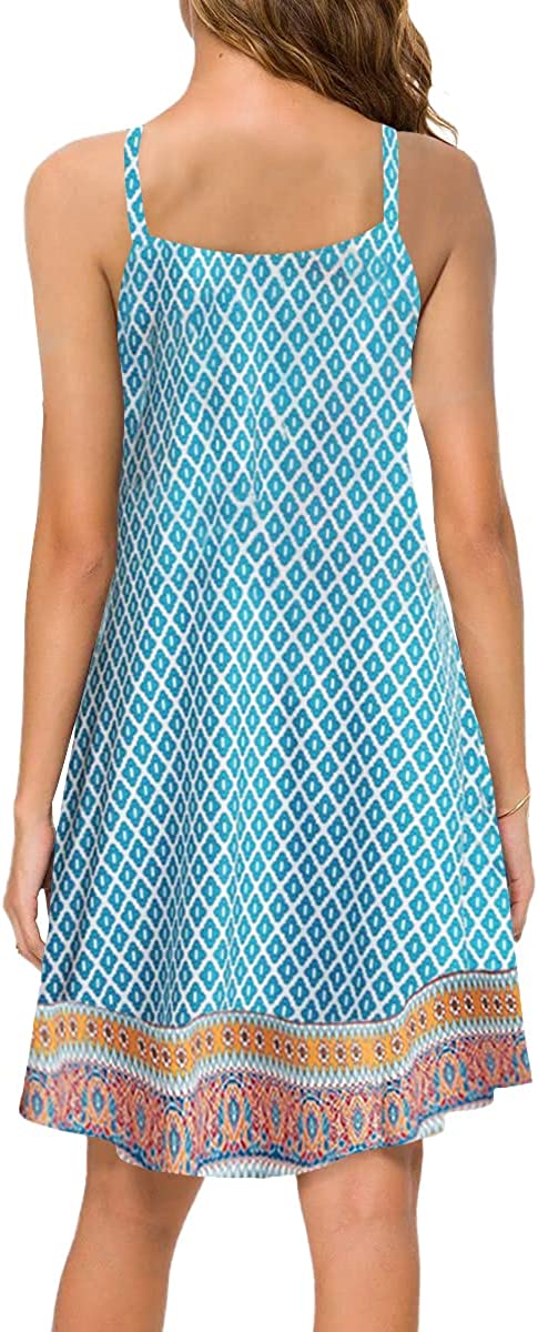 Women's Summer Dresses 2022 Boho Floral Print Beach Dress V Neck Sleeveless Spaghetti Strap Sundresses with Pockets
