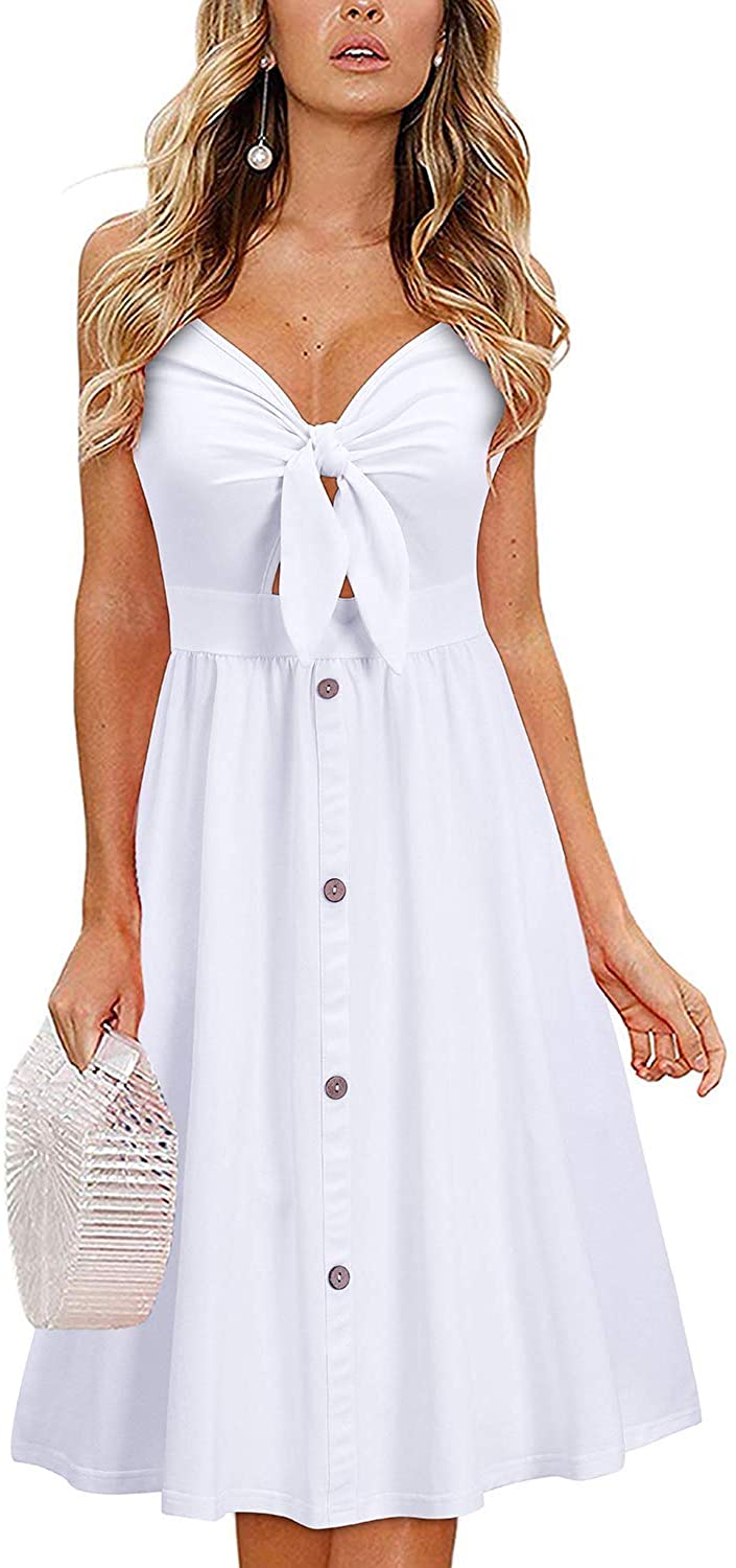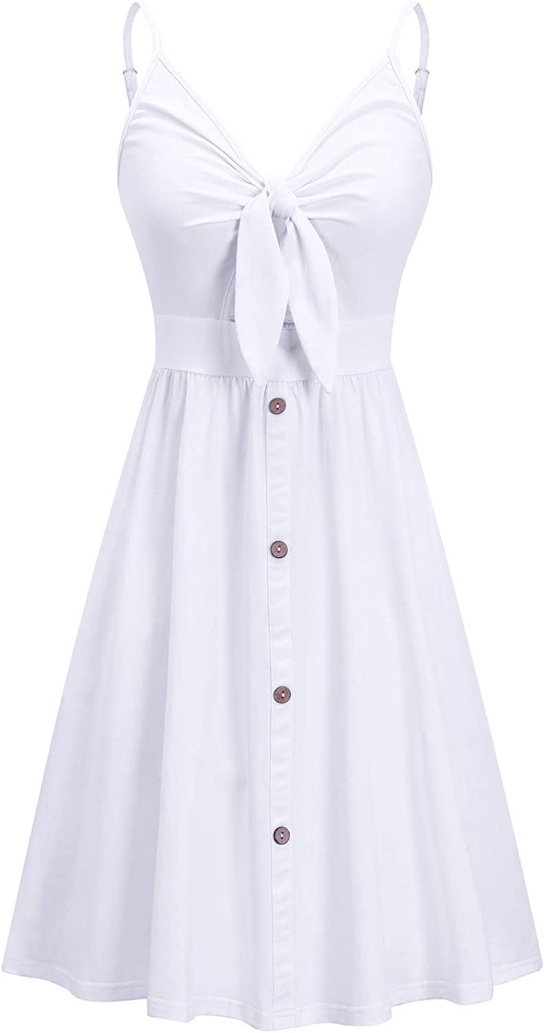Womens Summer Floral Sundress V Neck Tie Front Spaghetti Strap Dresses with Pockets