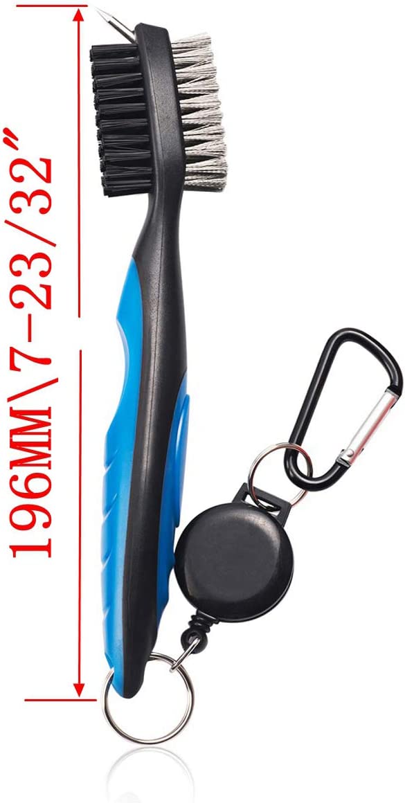Pack of 2 Golf Club Brush Groove Cleaner with Retractable Zip-line and Aluminum Carabiner Cleaning Tools