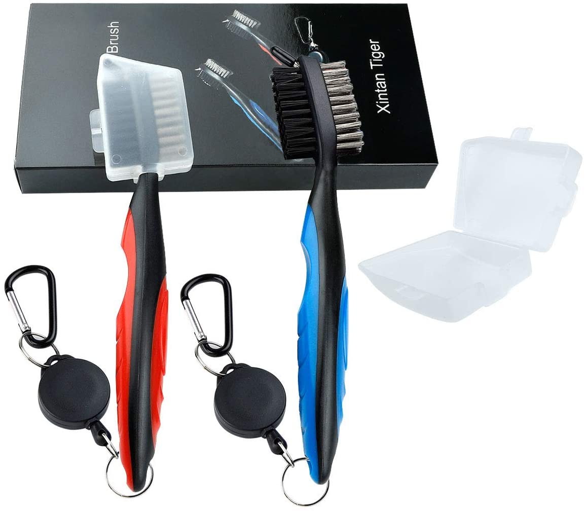 Xintan Tiger Pack of 2 Golf Club Brush Groove Cleaner with Retractable Zip-line and Aluminum Carabiner Cleaning Tools