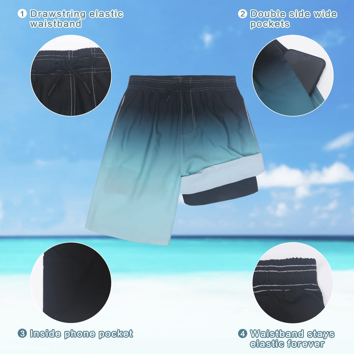 XSKJY Mens Swim Trunks with Compression Liner Swim Trunks Quick Dry Surfing Summer Beach Shorts Swimsuit Sports Shorts